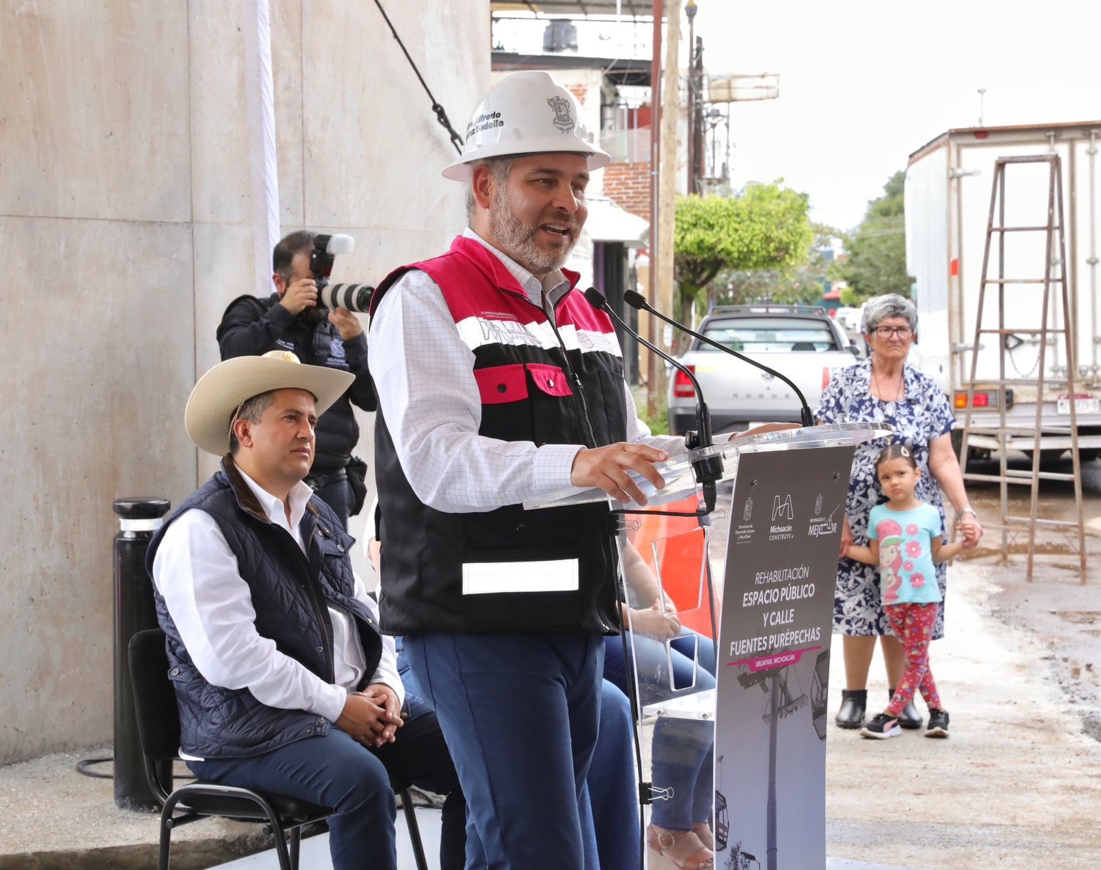 En el acto estuvieron presentes el titular del Secretariado Ejecutivo del Sistema Estatal de Seguridad Pública (SESESP), César Erwin Sánchez Coria; el alcalde de Uruapan, Carlos Manzo Rodríguez; la exalcaldesa Mary Doddoli; la legisladora federal Guadalupe Araceli Mendoza Arias; entre otras autoridades y población beneficiada.