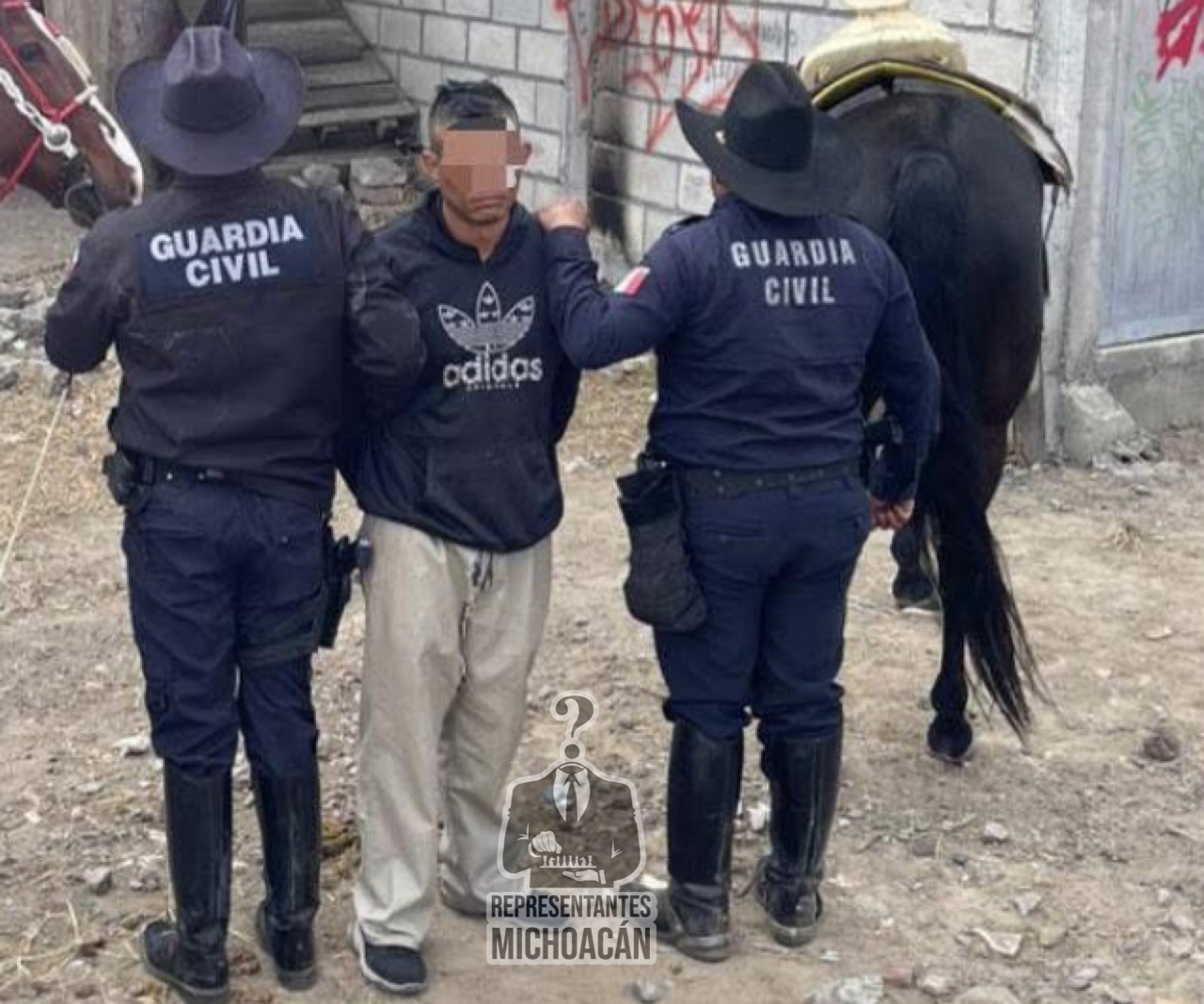 Morelia, Michoacán a 1 de febrero 2026.- Como parte de los patrullajes preventivos realizados en la capital michoacana, elementos del Agrupamiento de Equinos y Caninos aseguraron a un hombre que portaba una sustancia con características similares a la droga conocida como cristal.