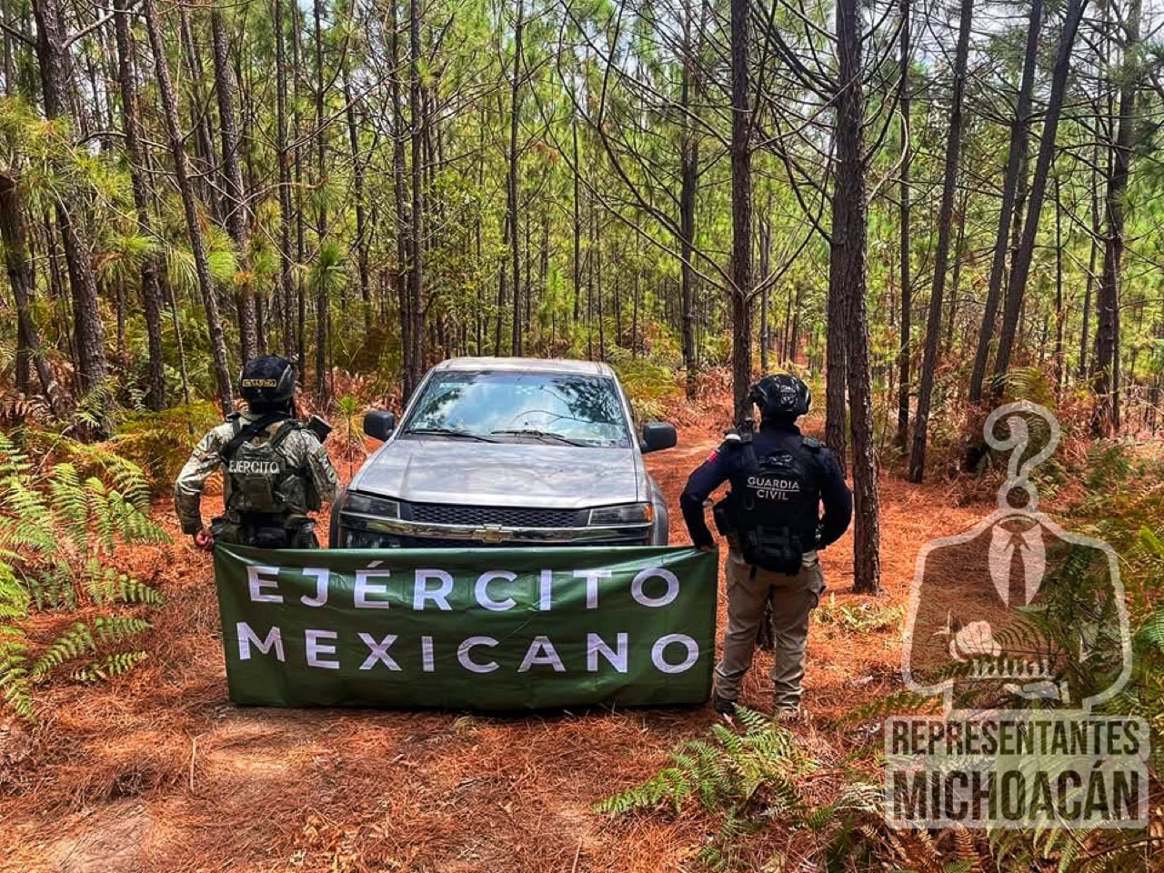 Morelia, Michoacán a 23 de mayo de 2025.- En una acción coordinada, elementos de la Guardia Civil y del Ejército Mexicano aseguraron cuatro vehículos con reporte de robo en el municipio de Tuzantla, Michoacán. Las unidades también presentaban leyendas alusivas a una célula delictiva, lo que encendió las alertas de las autoridades.