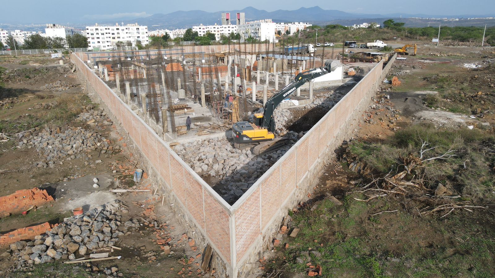 Actualmente, el muro perimetral se encuentra en fase de acabados y se trabaja en el colado de losas para sanitarios y edificios. La techumbre de la cancha ya fue instalada. En total, el plantel ocupará una superficie de 4 mil 220 metros cuadrados y beneficiará a aproximadamente 700 estudiantes.