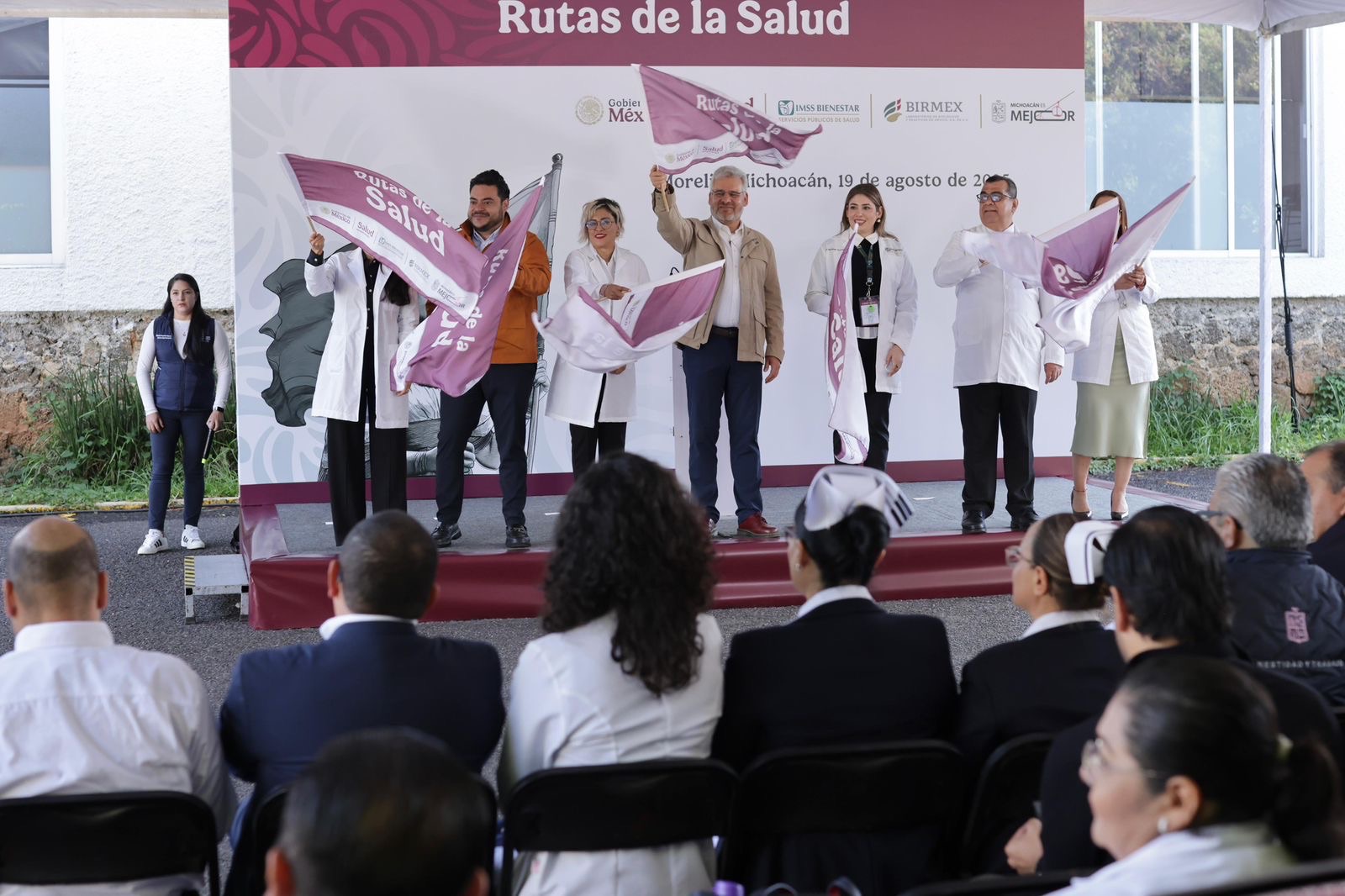 Morelia, Michoacán, 19 de agosto de 2025.- Desde Michoacán, el gobernador Alfredo Ramírez Bedolla dio el banderazo de salida a las Rutas de la Salud, sistema federal de distribución de medicamentos gratuitos en hospitales y centros de salud del IMSS Bienestar, impulsado por la presidenta Claudia Sheinbaum Pardo.