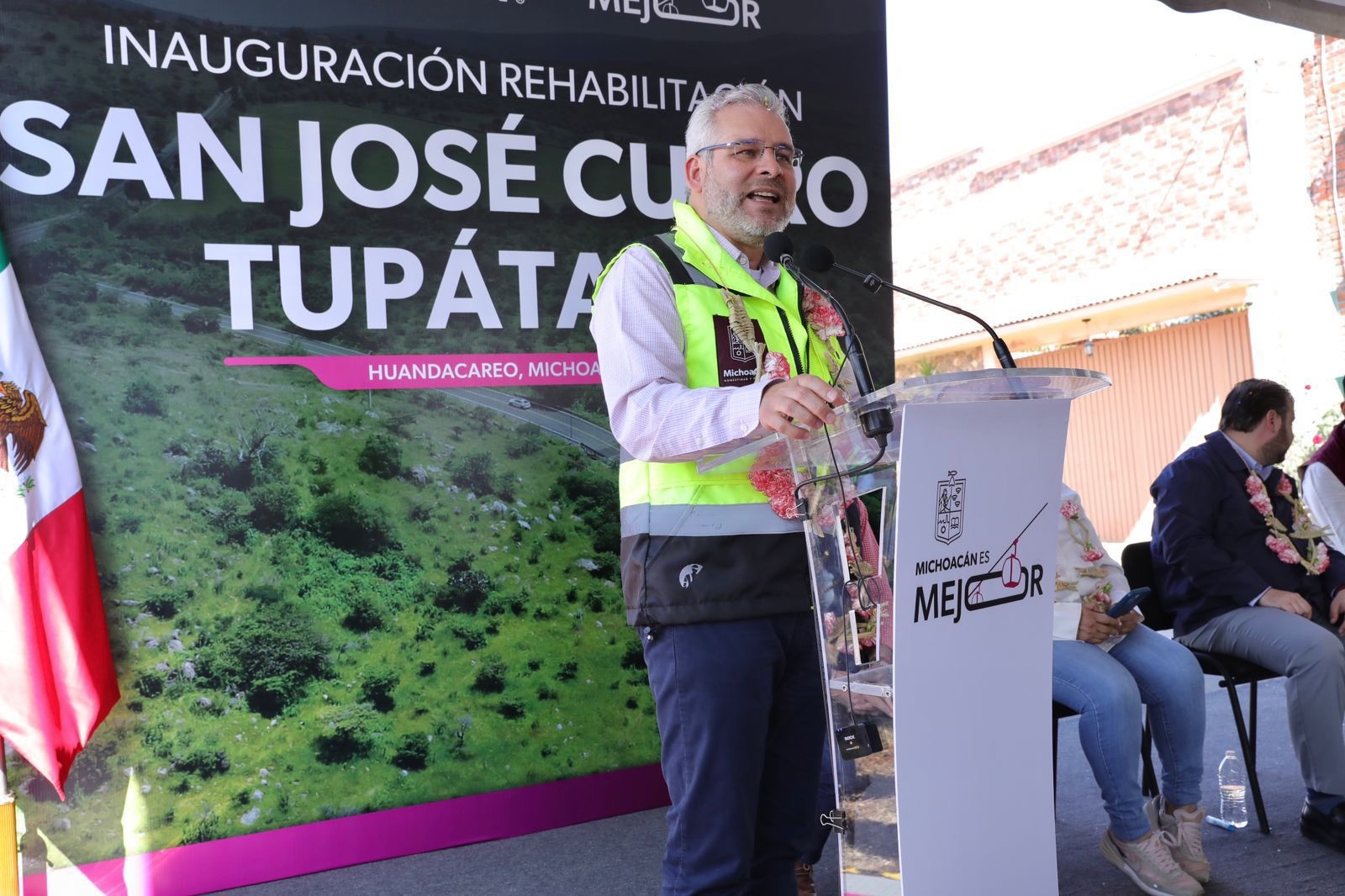 Al evento asistieron autoridades estatales y municipales, entre ellas la presidenta de la Mesa Directiva del Congreso local, Giulianna Bugarini Torres; el secretario de Gobierno, Raúl Zepeda Villaseñor; el presidente municipal de Huandacareo, Pedro Alexis Velázquez; la diputada Belinda Iturbide Díaz; el presidente de la CMIC Michoacán, Alejandro Vargas; y representantes comunitarios.