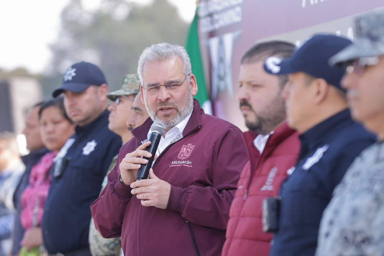 Zacán, Michoacán, 9 de enero de 2025.- Con el objetivo de reforzar la seguridad en el tramo carretero Uruapan–Peribán, el gobernador Alfredo Ramírez Bedolla puso en marcha en la comunidad con autogobierno de Zacán el operativo “Guardianes del Camino”, integrado por elementos de la Guardia Civil, el Ejército Mexicano y la Guardia Nacional.