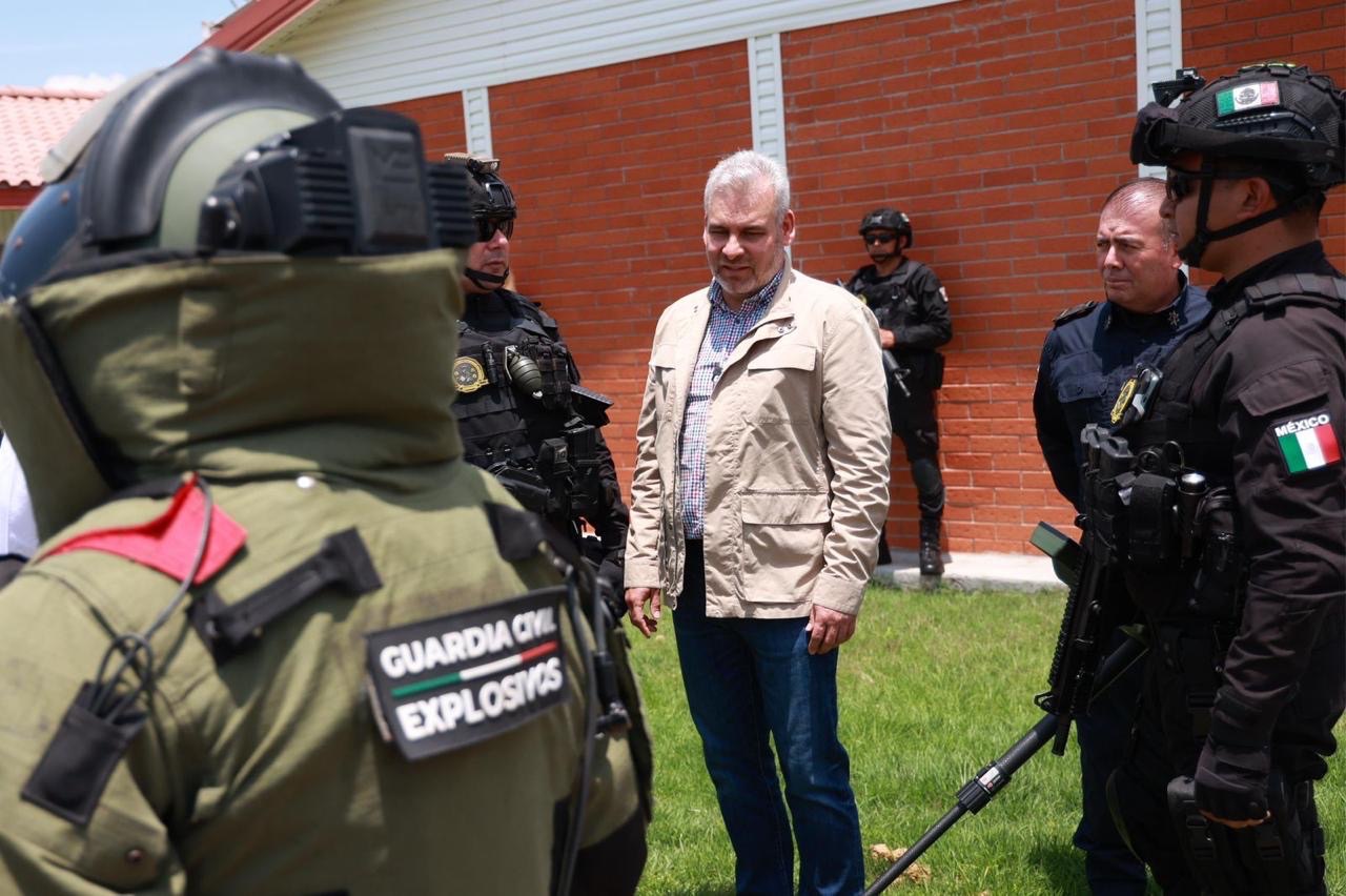 Acompañado por el secretario de Seguridad Pública, Juan Carlos Oseguera Cortés, y el capitán del grupo antiexplosivos, Carlos Roberto Gómez Ruiz, el mandatario destacó la importancia de esta unidad para fortalecer labores de detección, extracción y desactivación de artefactos explosivos.