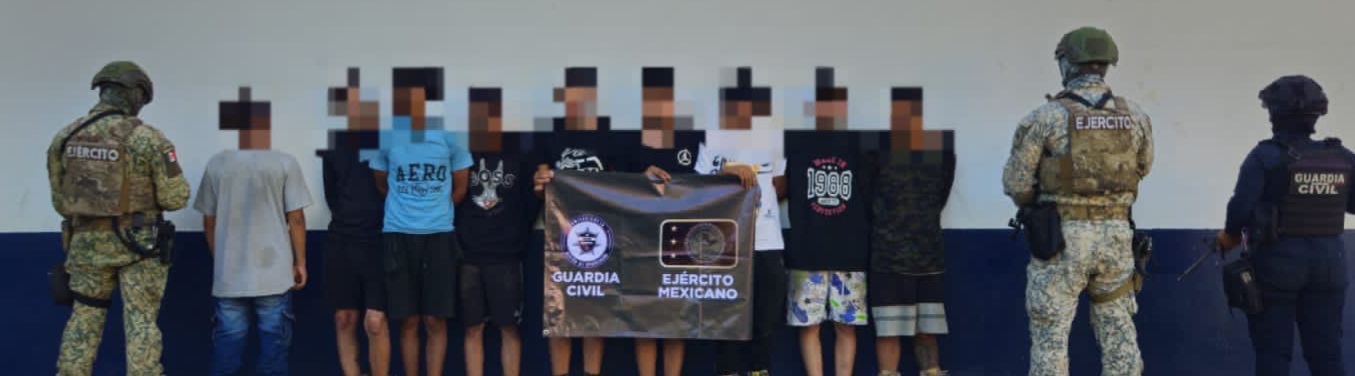 De acuerdo con el informe oficial, ocho de los detenidos son de nacionalidad venezolana y uno más originario de Honduras. Durante el despliegue aéreo y terrestre, los elementos de la Guardia Civil y el Ejército Mexicano aseguraron dos fusiles de alto poder, calibres 7.62×39 mm y 5.56×39 mm, así como equipo táctico, 260 cartuchos útiles, 102 cargadores, alrededor de 150 gramos de mariguana, 28 estrellas ponchallantas y nueve contenedores para artefactos explosivos improvisados.