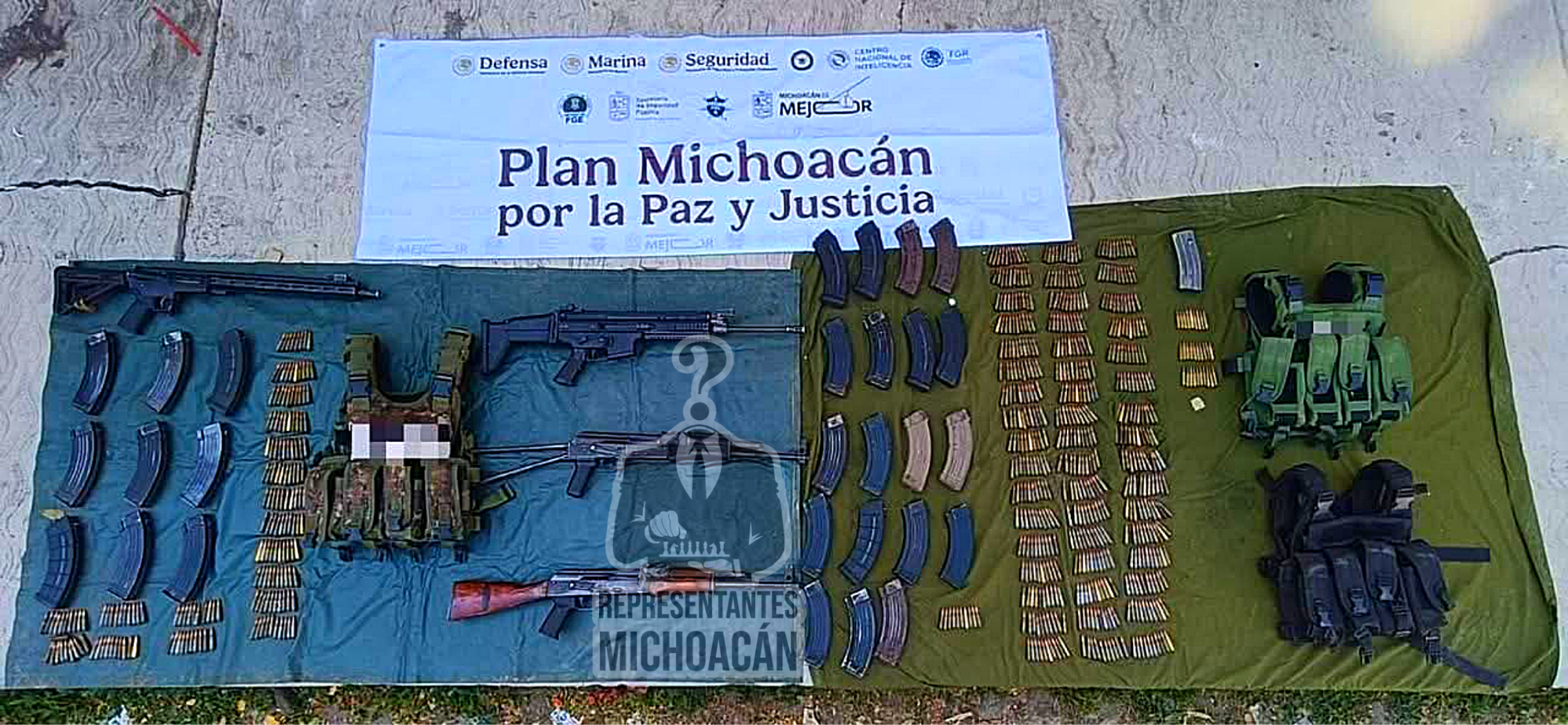 Durante la inspección, los agentes aseguraron cuatro fusiles de distintos calibres, entre ellos un SCAR 16S calibre 5.56×45 mm de la firma FN Herstal, además de armas calibre 7.62×39 mm. También se decomisaron 28 cargadores calibre 7.62×39 mm, un cargador calibre .223, 685 cartuchos útiles calibre 7.62×39 mm y 29 cartuchos calibre .223, así como tres chalecos tácticos porta placas con aditamentos para cargadores.