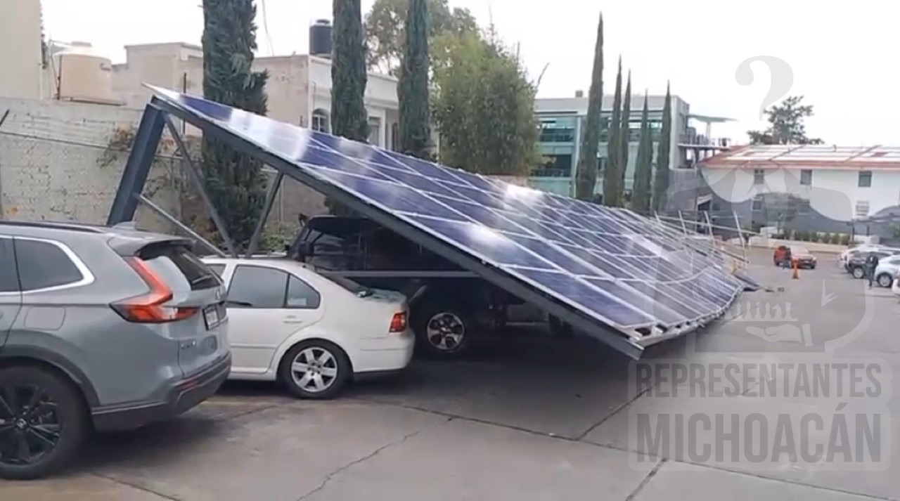 Morelia, Michoacán a 18 de junio de 2025.- Las intensas lluvias registradas la tarde de este miércoles provocaron la caída de una estructura dentro del estacionamiento del Club Britania, generando daños materiales a varios vehículos sin que se reportaran personas lesionadas.