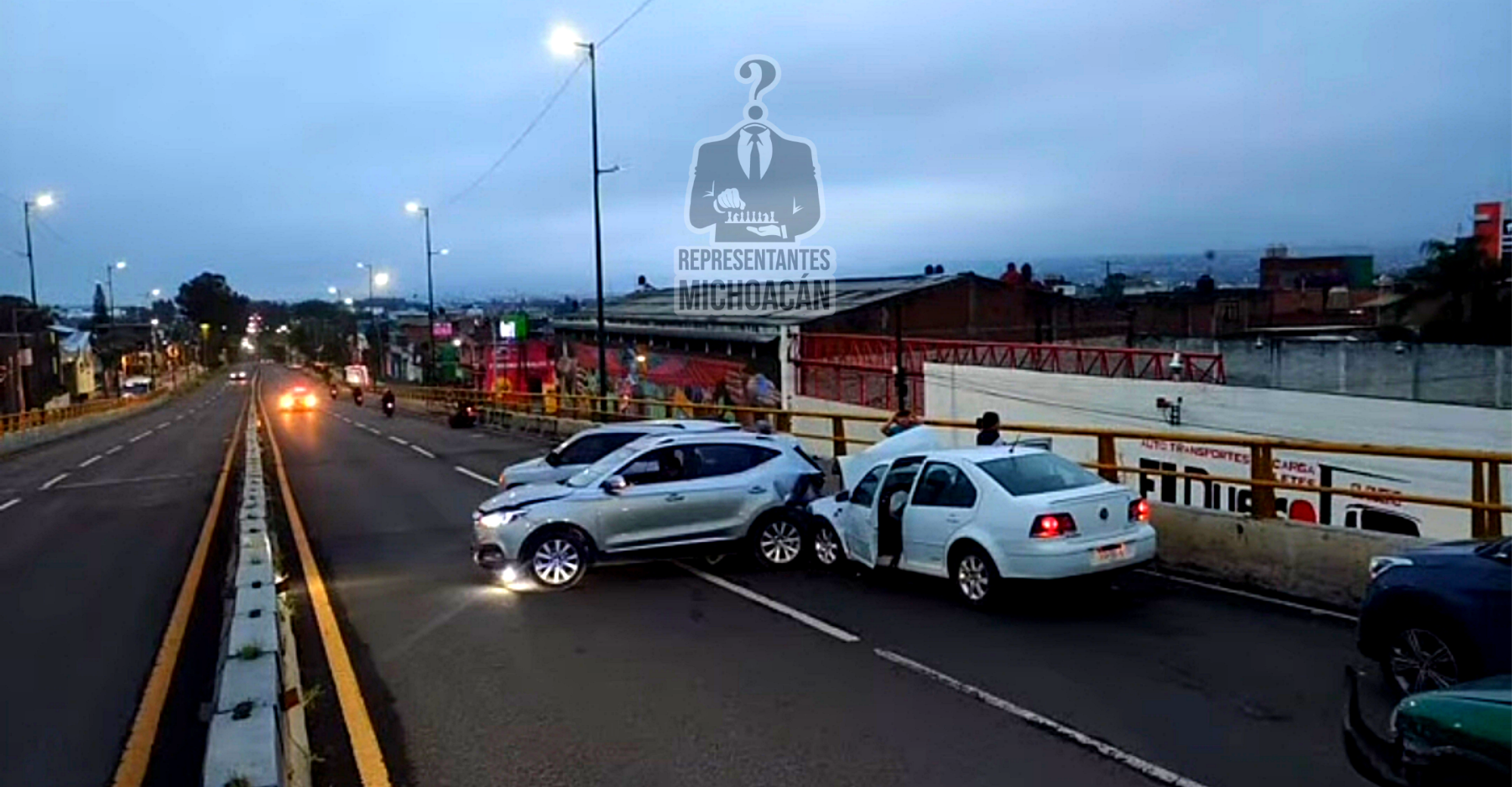 Morelia, Michoacán, 25 de Agostode 2025.– Esta mañana se registró una fuerte carambola en la salida a Quiroga, sobre el puente con dirección al centro de la ciudad.