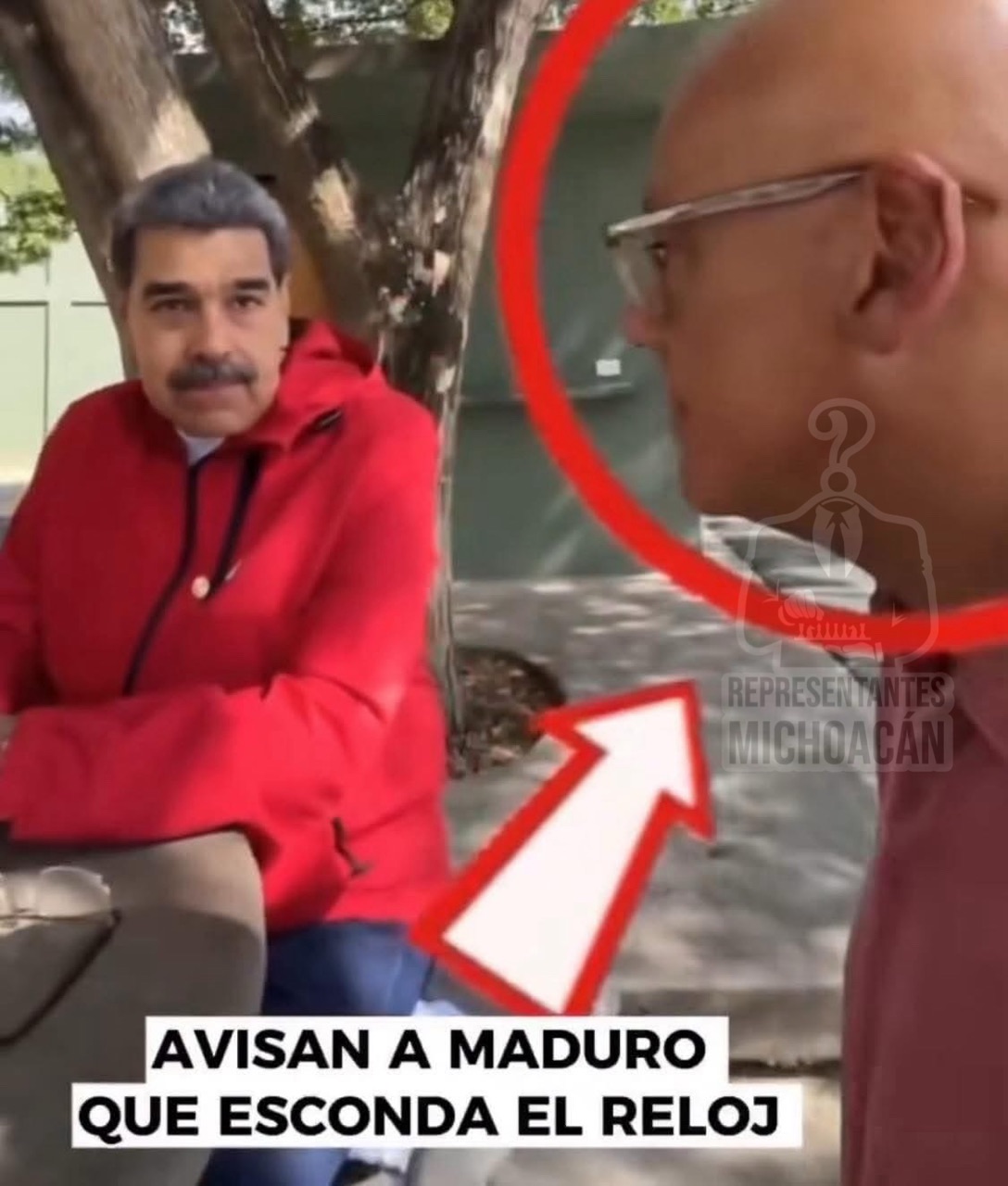 El hecho ocurrió cuando el mandatario tenía el brazo apoyado sobre la mesa y el costoso reloj quedó visible ante las cámaras. Segundos después, Jorge Rodríguez, presidente de la Asamblea Nacional, le hizo una discreta señal, tras lo cual Maduro rápidamente bajó la mano y cubrió el reloj con su manga.