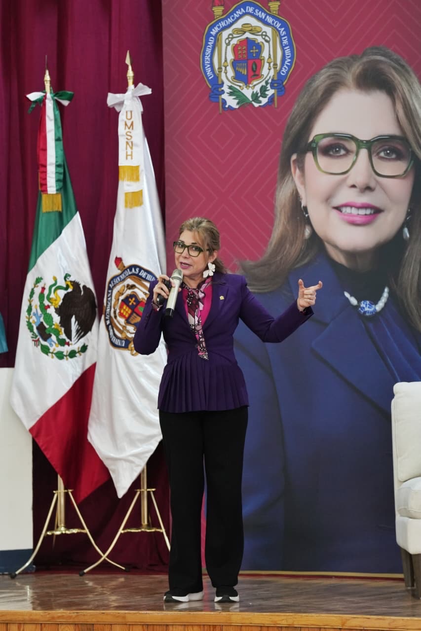 Durante la ponencia magistral “Innovación en microcredenciales y solidez académica en Ceneval”, ofrecida en la Universidad Michoacana de San Nicolás de Hidalgo (UMSNH), la funcionaria federal subrayó que la formación integral debe contemplar habilidades del siglo XXI, como el trabajo colaborativo, el pensamiento crítico, el respeto a los derechos humanos y el cuidado del medio ambiente.
