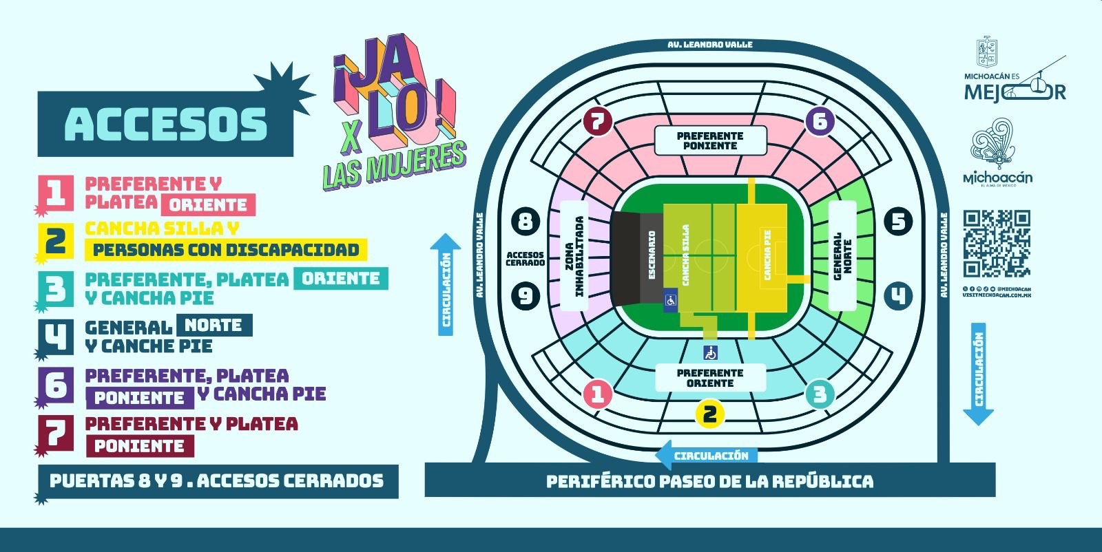 Morelia, Michoacán, 14 de agosto 2025.- Con motivo del concierto gratuito de Carín León este 16 de agosto, dentro del Festival Jalo x las Mujeres organizado por el Gobierno de Michoacán, se habilitarán seis accesos al Estadio Morelos, los cuales abrirán a partir de las 16:00 horas.