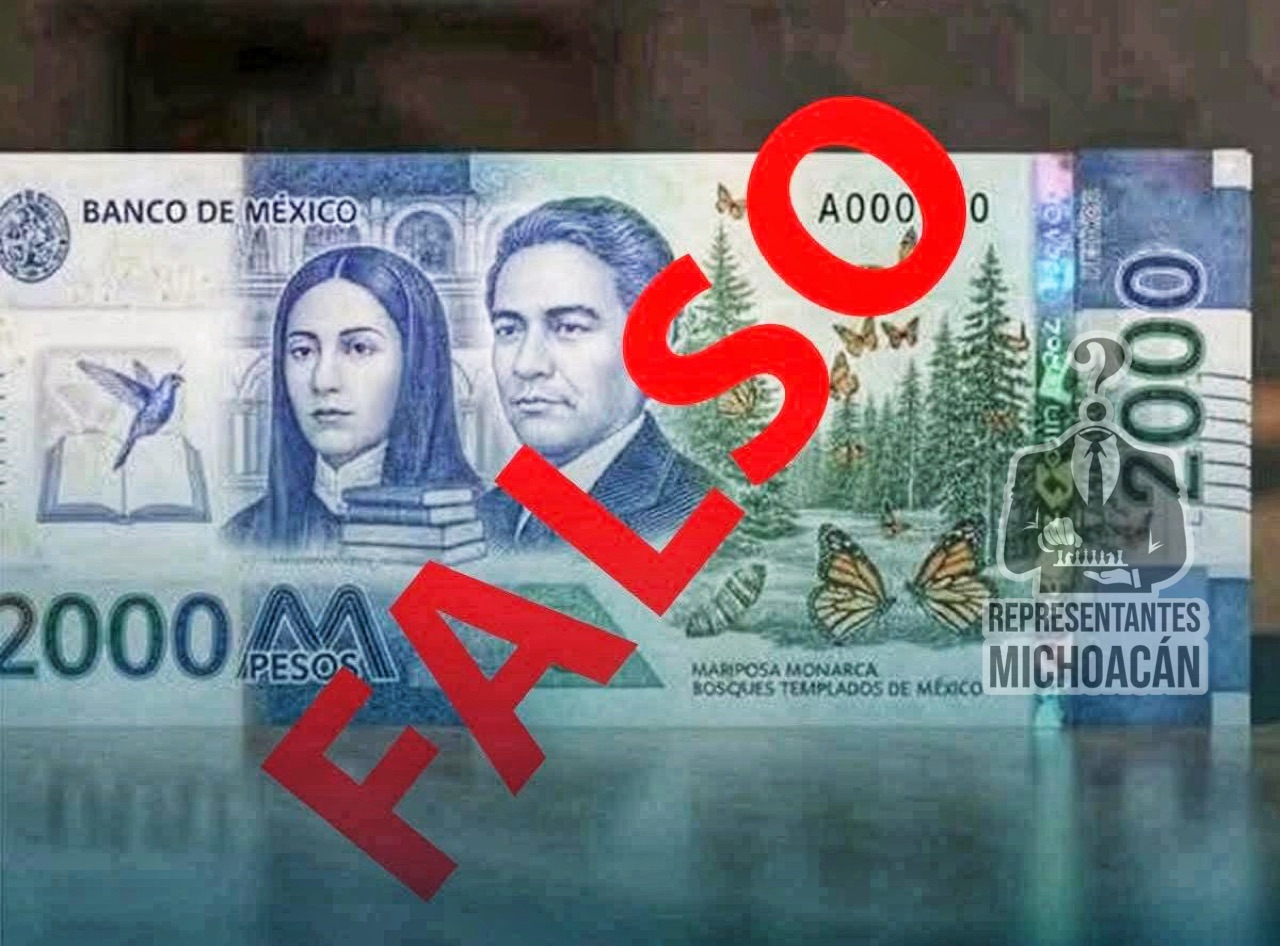 Morelia, Michoacán a 22 de octubre de 2025.- En los últimos días comenzó a circular en redes sociales la imagen de un supuesto billete de 2 mil pesos, generando confusión entre los usuarios.