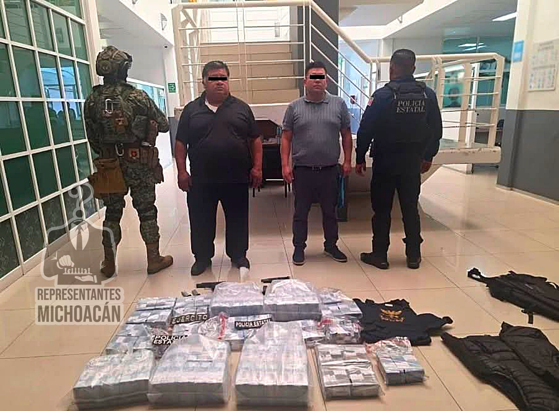Naucalpan, Estado de México, 24 de Diciembre de 2025.— Elementos de la Secretaría de Seguridad del Estado de México (SS Edomex) detuvieron a dos custodios de la empresa de traslado de valores Grupo Águila Bicéfala, quienes transportaban 37 millones 701 mil pesos en efectivo en la zona de Lomas Verdes, a pesar de que el dinero y las armas que portaban contaban con documentación legal vigente.