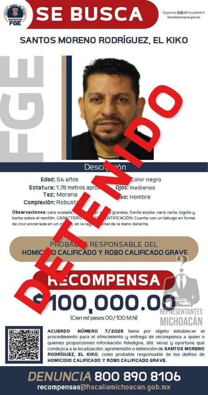 Morelia, Michoacán a 24 de junio de 2025.- Autoridades detuvieron en el estado de Nayarit a Santos Moreno Rodríguez, alias “El Kiko”, señalado como presunto responsable del homicidio de Salvador Bastida, quien fuera alcalde de Tacámbaro, #Michoacán.