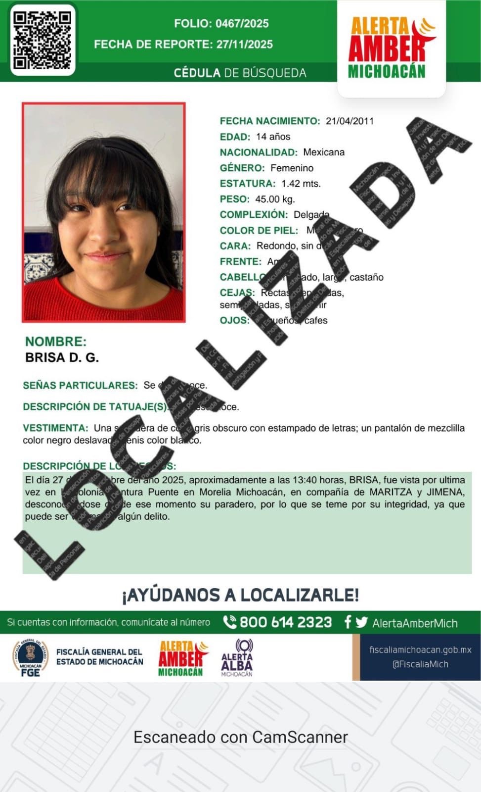 Morelia, Michoacán, 1 de diciembre de 2025.- El Sistema para el Desarrollo Integral de la Familia (DIF) Michoacán informó que las tres niñas que salieron de un Centro de Acogimiento Residencial ubicado en Morelia fueron localizadas en perfectas condiciones y ya se encuentran bajo resguardo de la institución.