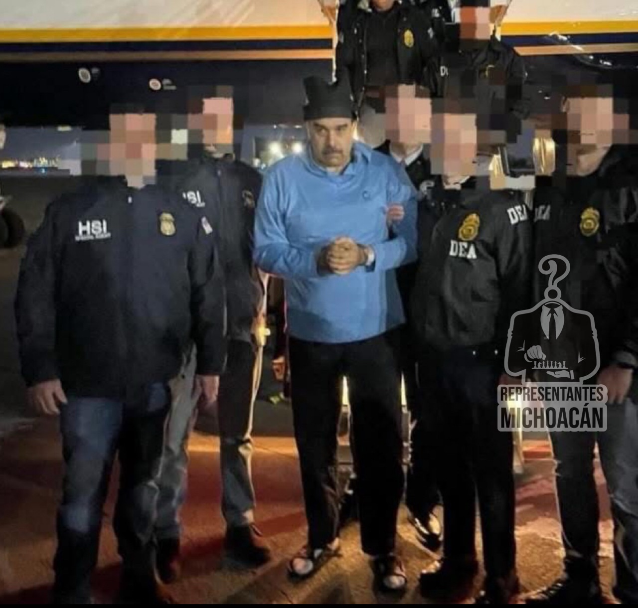 Morelia, Michoacán a 3 de enero de 2026.- En las últimas horas comenzaron a circular en redes sociales diversas fotografías que muestran a Nicolás Maduro en lo que serían instalaciones de la Administración para el Control de Drogas (DEA) en Estados Unidos, situación que ha provocado un amplio debate a nivel internacional.