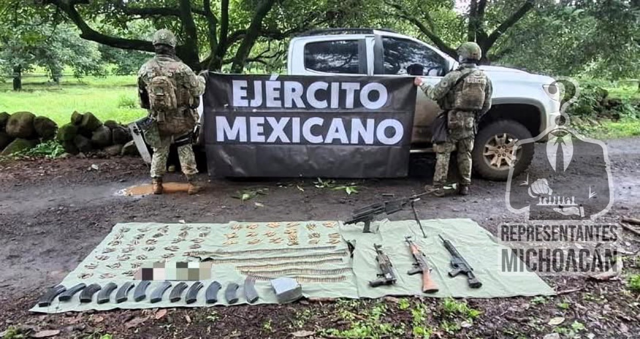Morelia, Michoacán a 4 de julio de 2025.- La violencia volvió a irrumpir en el occidente del estado luego de que elementos del Ejército Mexicano fueran agredidos a tiros en la localidad de Guáscuaro, municipio de Tingüindín. Los militares repelieron el ataque y lograron asegurar un arsenal que se presume pertenecía a un grupo delictivo que opera en la región.