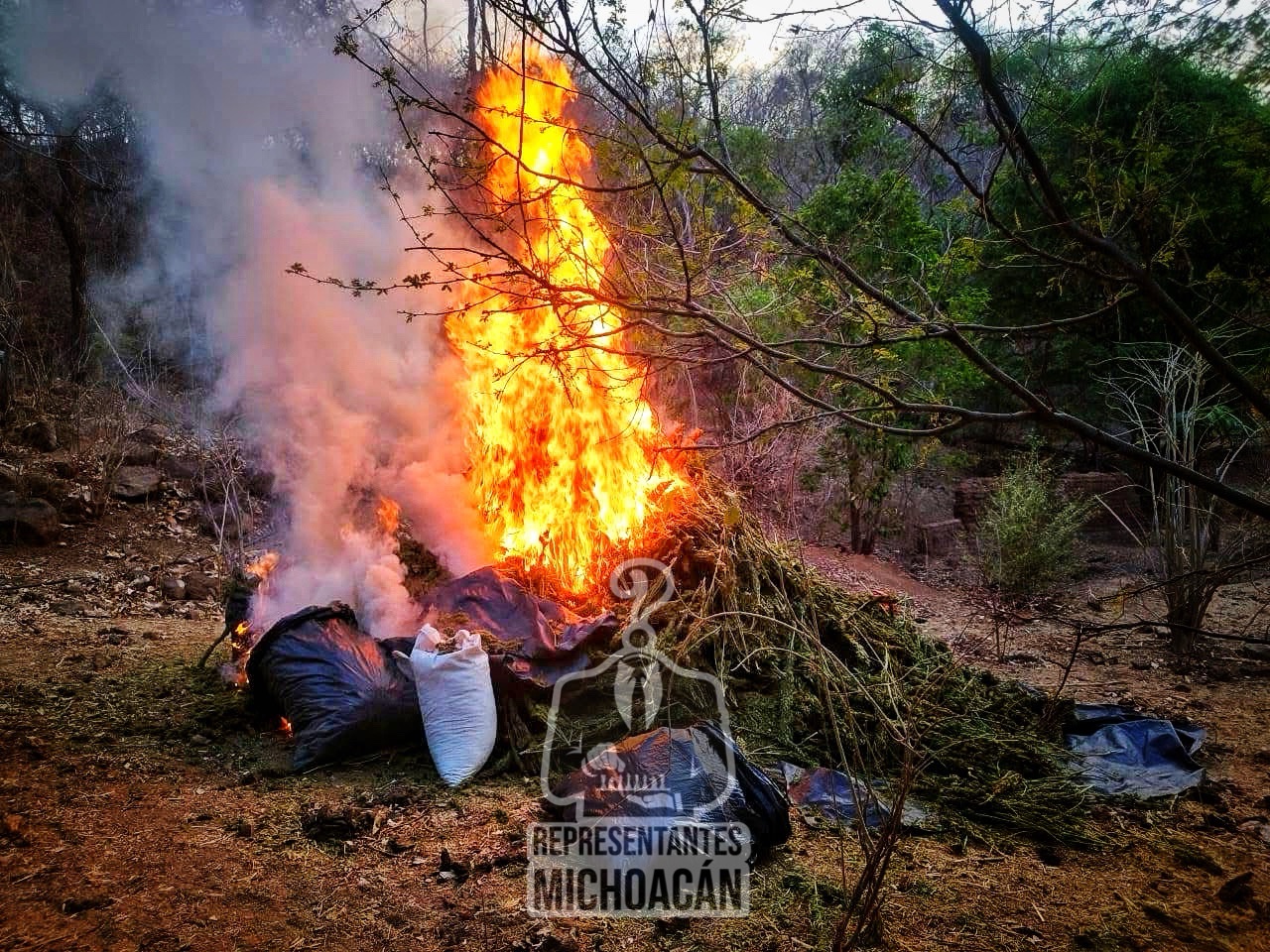 Tras asegurar el enervante, el personal militar informó a las autoridades correspondientes, quienes dieron paso a la incineración inmediata de la droga como parte del protocolo de destrucción.