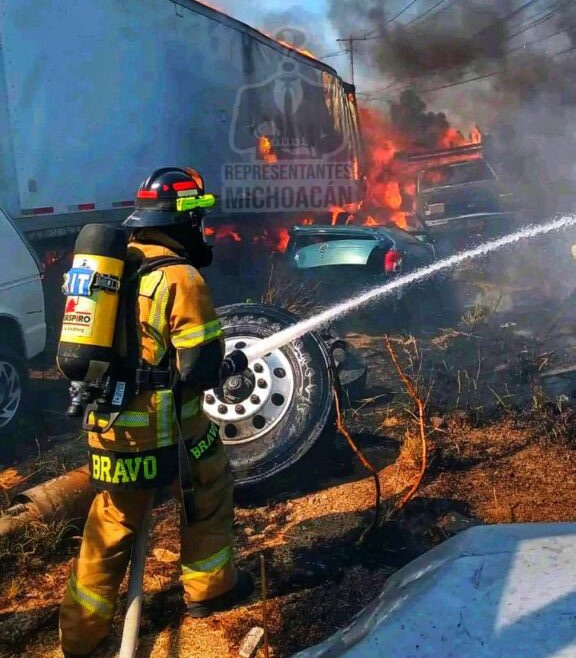 Al lugar acudieron elementos de Protección Civil de Michoacán y cuerpos de bomberos, quienes continúan trabajando para sofocar las llamas. Testigos han reportado diversas explosiones al interior del lugar, ocasionadas por los tanques de combustible presentes en los automóviles.