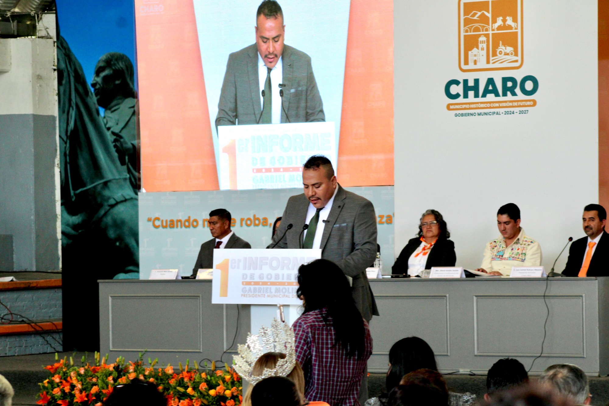 Charo, Michoacán, 11 de agosto de 2025.- En el marco del Primer Informe de Gobierno municipal, el regidor de representación proporcional, Eloy Arreola Yépez, emitió un mensaje en el que reconoció avances de administraciones anteriores, llamó a la unidad y presentó propuestas para fortalecer el desarrollo de Charo.
