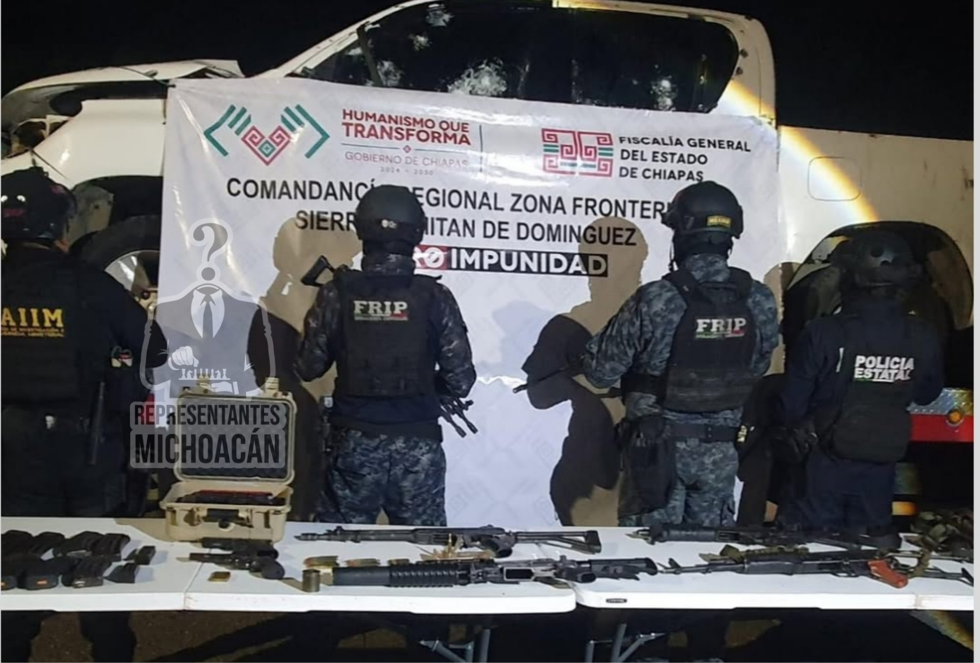 El tiroteo se registró en el corredor Ciudad Cuauhtémoc-La Mesilla, zona clave para el tráfico de drogas, armas y migrantes. Según autoridades chiapanecas, los agresores utilizaron fusiles de asalto, granadas de fragmentación y vehículos blindados. La respuesta vino de un despliegue conjunto de la Fuerza de Reacción Inmediata Pakal (FRIP), la Policía Preventiva Estatal, la FGE y la SSPC.