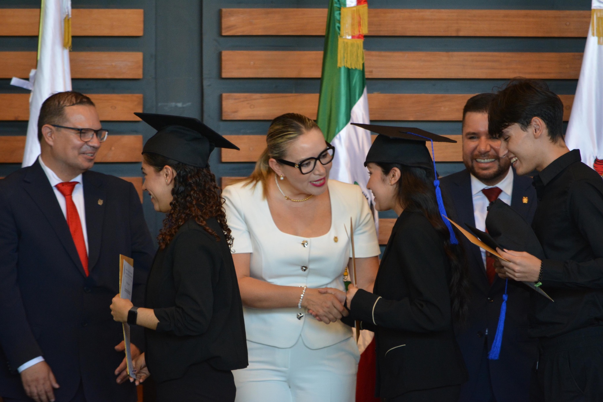 Durante la ceremonia, la rectora Yarabí Ávila González exhortó a las y los jóvenes a poner sus conocimientos al servicio de su entorno y a asumir con compromiso su formación profesional. “Cada uno de ustedes representa un esfuerzo constante, representa la disciplina silenciosa de las horas dedicadas al estudio”, expresó.