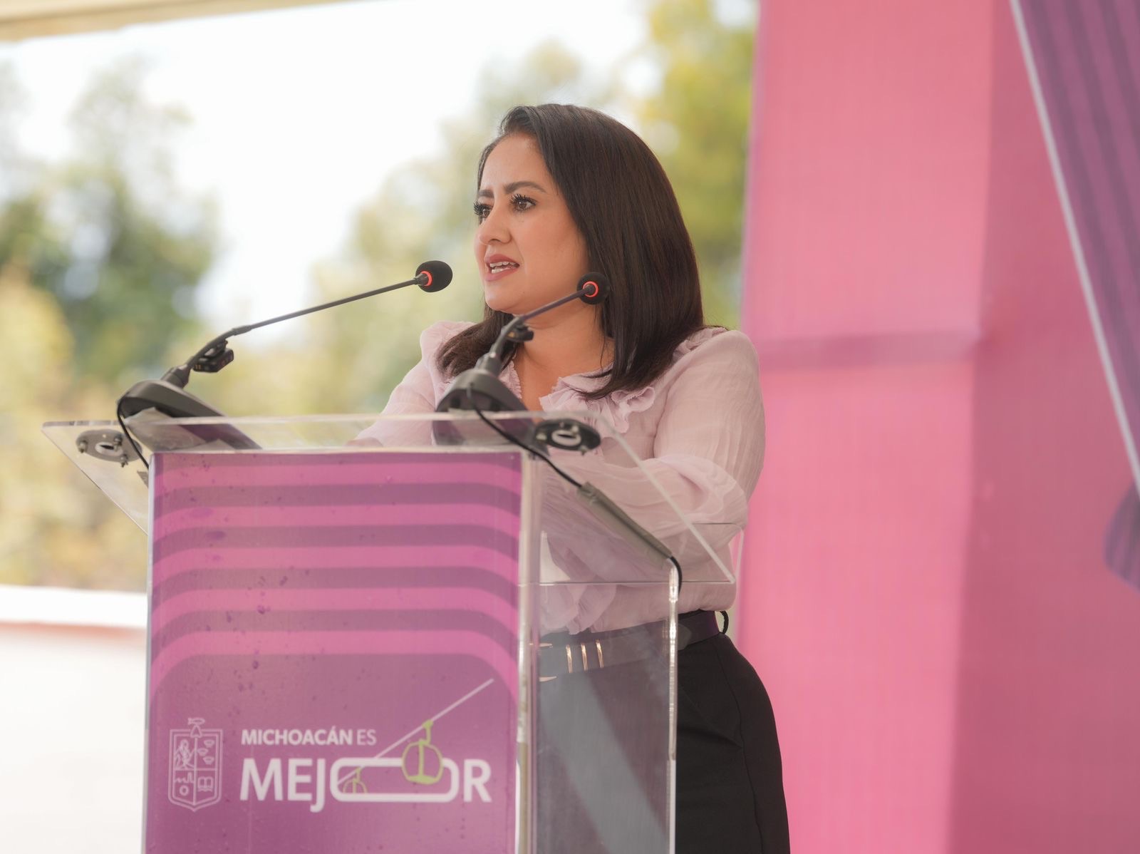 Uruapan, Michoacán, 13 de abril de 2026.- La secretaria de Desarrollo Urbano y Movilidad, Gladyz Butanda Macías, entregó tarjetas prepago del teleférico y autobuses urbanos a estudiantes de la Universidad Politécnica de Uruapan, como parte de las acciones para fortalecer el acceso al transporte.