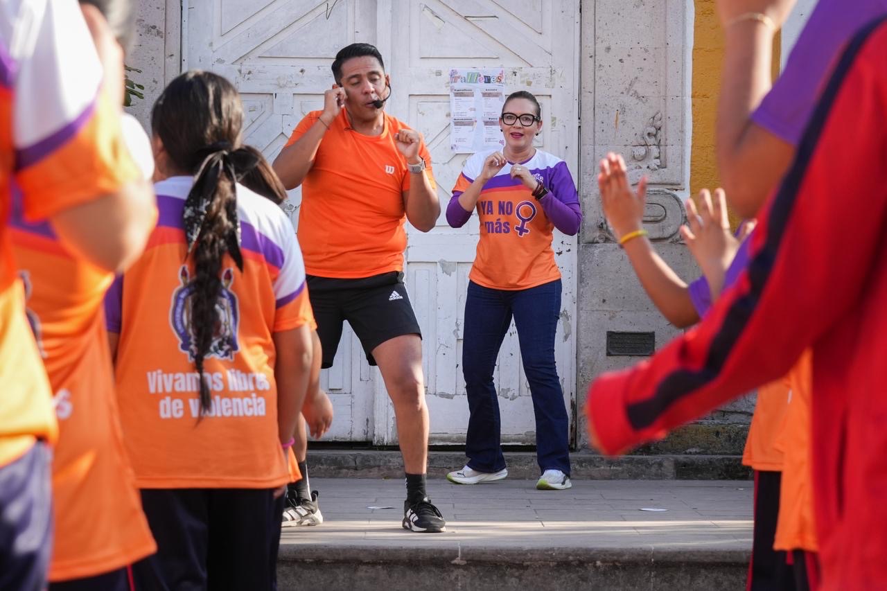 En el internado “La Huerta”, más de 350 alumnas participaron en la actividad encabezada por el maestro Gabriel Calderón, en un ejercicio que combinó activación física y reflexión sobre la importancia de rechazar y combatir la violencia de género. Expertas y expertos en derechos humanos e igualdad de género dirigieron mensajes a las estudiantes, invitándolas a reconocer, denunciar y enfrentar cualquier forma de agresión.