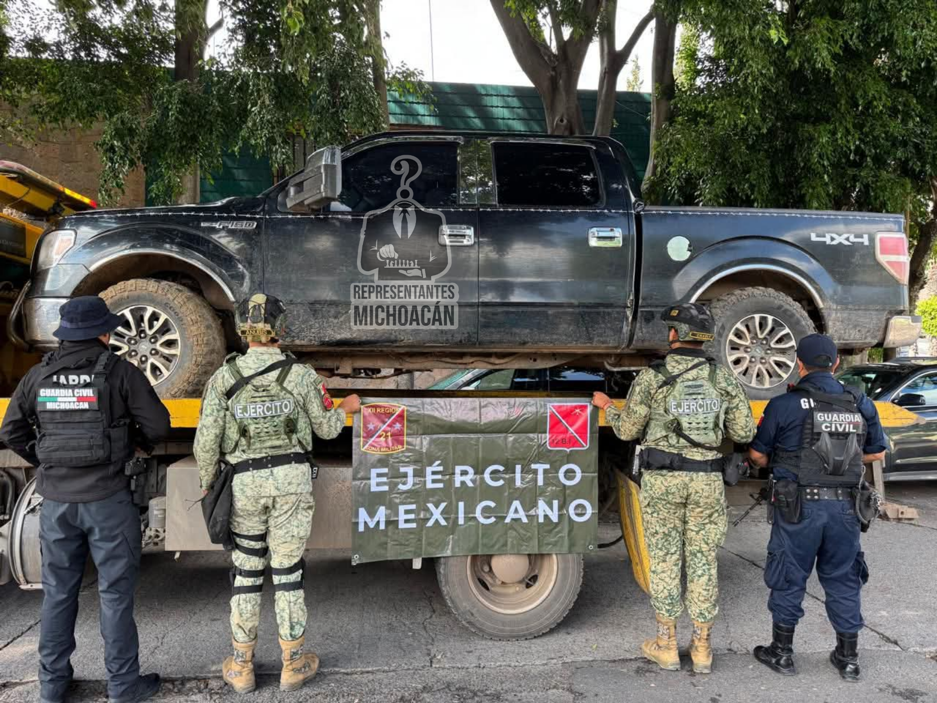 Santa Ana, Hidalgo, Michoacán, 29 de Julio de 2025.- En un operativo conjunto entre elementos de la Secretaría de Seguridad Pública (SSP) y efectivos de la Secretaría de la Defensa Nacional (SEDENA), se logró el aseguramiento de un importante arsenal, municiones y varios vehículos en la localidad de Santa Ana, perteneciente al municipio de Hidalgo.