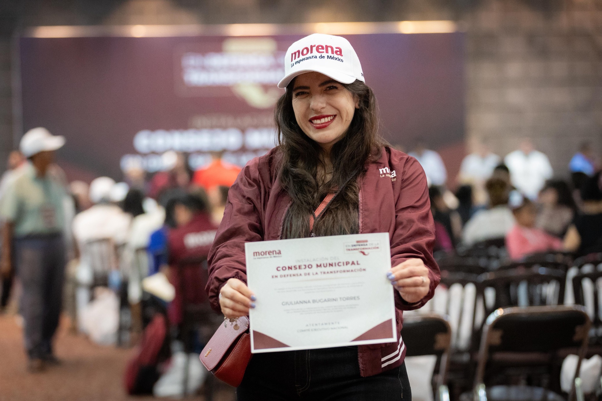 Morelia, Michoacán, 19 de abril de 2026.- En el marco de la instalación del Consejo Municipal en Defensa de la Transformación, Giulianna Bugarini tomó protesta como una de las presidentas de los comités seccionales conformados en Morelia, como parte de las tareas de organización territorial de Morena en la capital del estado.