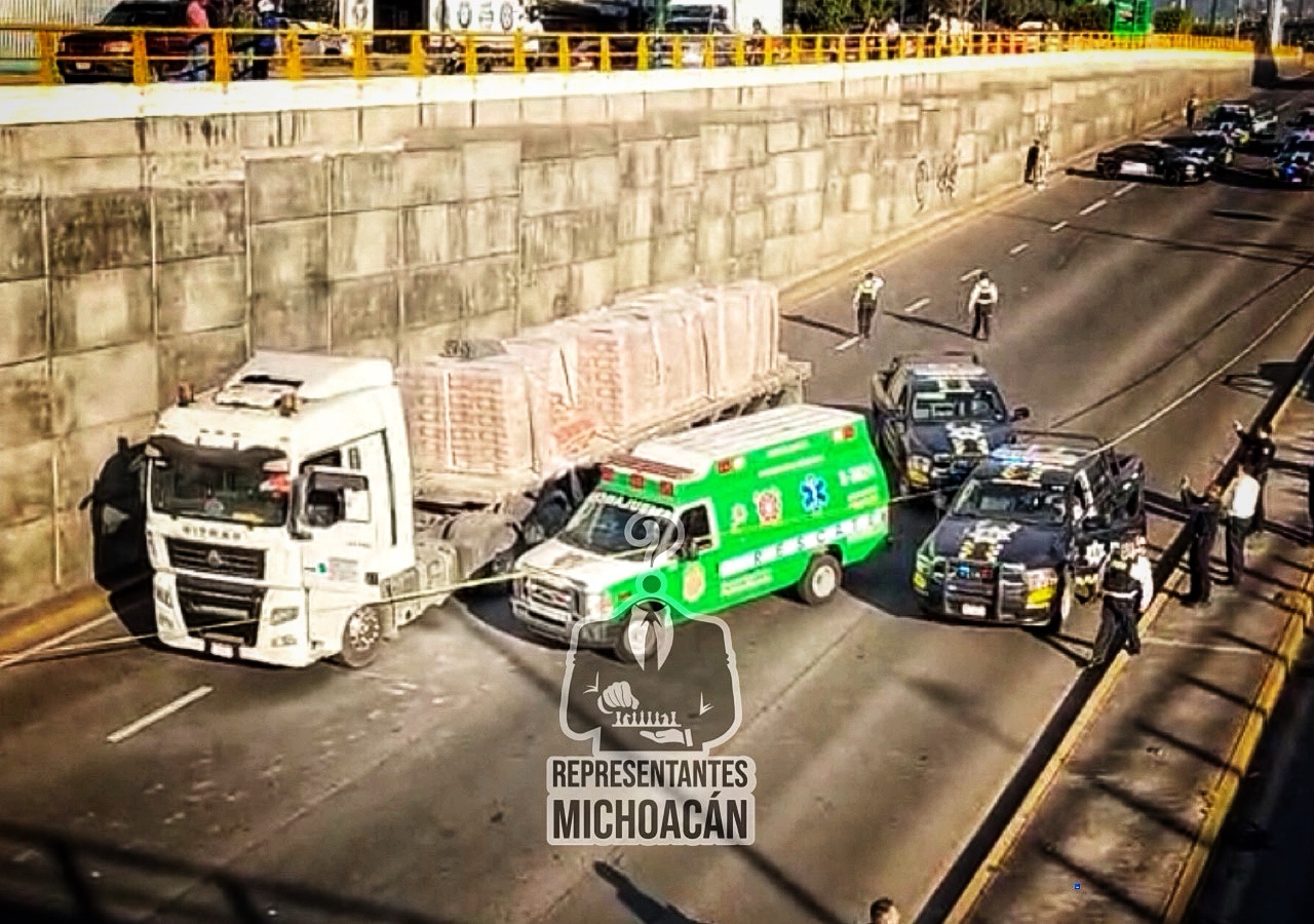 Morelia, Michoacán a 28 de octubre de 2025.- Un hombre falleció la tarde de este martes tras ser arrollado por un camión de carga en el Libramiento Norte de Morelia.