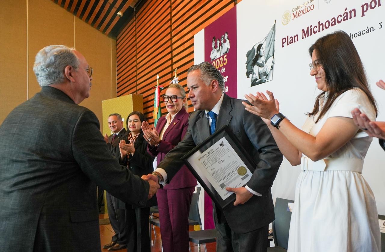 Morelia, Michoacán, a 03 de diciembre de 2025.- La Universidad Michoacana de San Nicolás de Hidalgo (UMSNH) es la institución que más patenta en Michoacán, destacó el director general del Instituto Mexicano de la Propiedad Industrial (IMPI), Santiago Nieto Castillo, durante la entrega de siete nuevos Títulos de Patente a investigadoras e investigadores nicolaitas, acto en el que estuvo acompañado por la rectora Yarabí Ávila González.