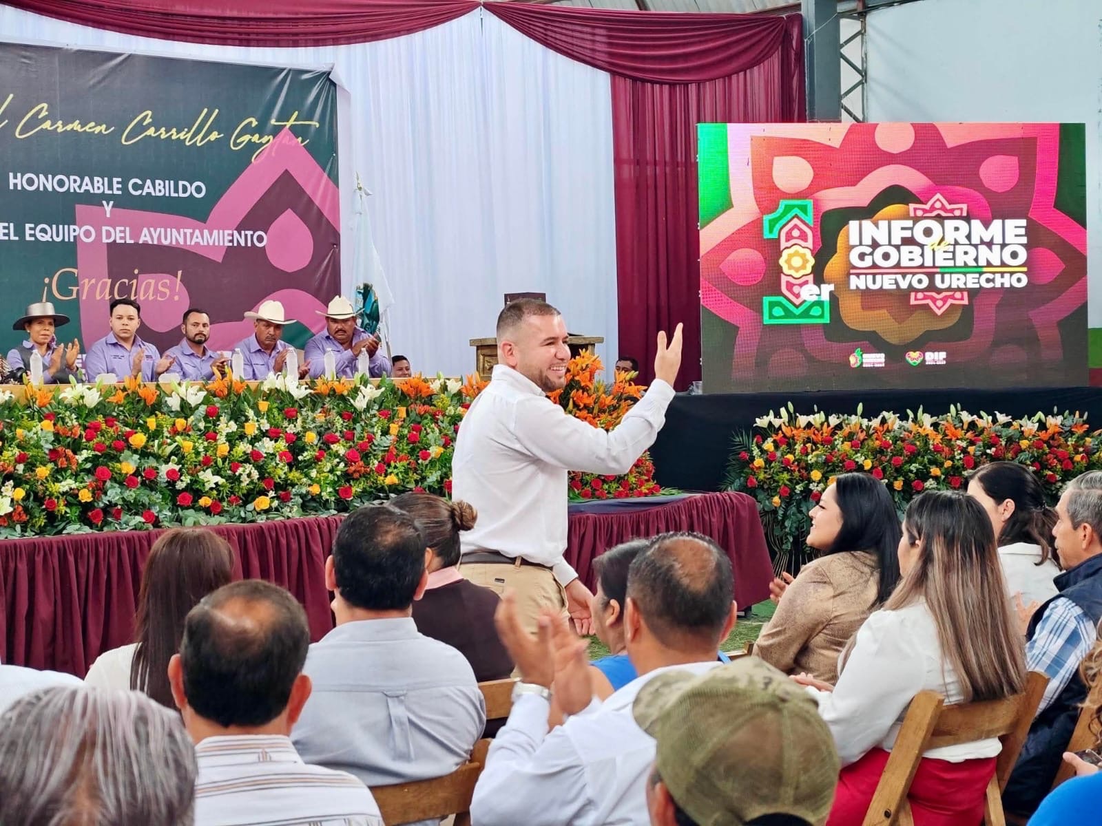 Durante su visita a Nuevo Urecho, el legislador reconoció la labor de la presidenta municipal, María del Carmen Carrillo Gaytán, al señalar que la administración que encabeza se distingue por mantener cercanía con la ciudadanía y fomentar acciones conjuntas en beneficio de la comunidad.