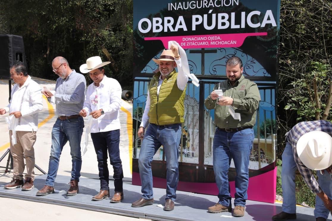 Zitácuaro, Michoacán, 26 de octubre de 2025.- El gobernador Alfredo Ramírez Bedolla encabezó la inauguración de la calle La Herradura y un domo en la caseta de la policía comunal en la comunidad indígena con autogobierno de Donaciano Ojeda, en el municipio de Zitácuaro.