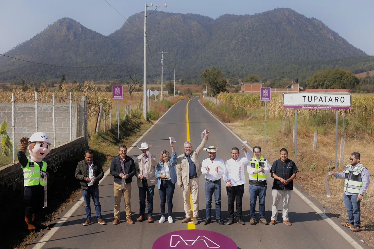 Explicó que, durante la administración, se rehabilitaron la carretera Tupátaro–Cuanajo y el tramo Tupátaro–autopista, lo que permitirá una movilidad más ágil y segura para más de 7 mil 500 habitantes de comunidades pertenecientes a Pátzcuaro y Huiramba.