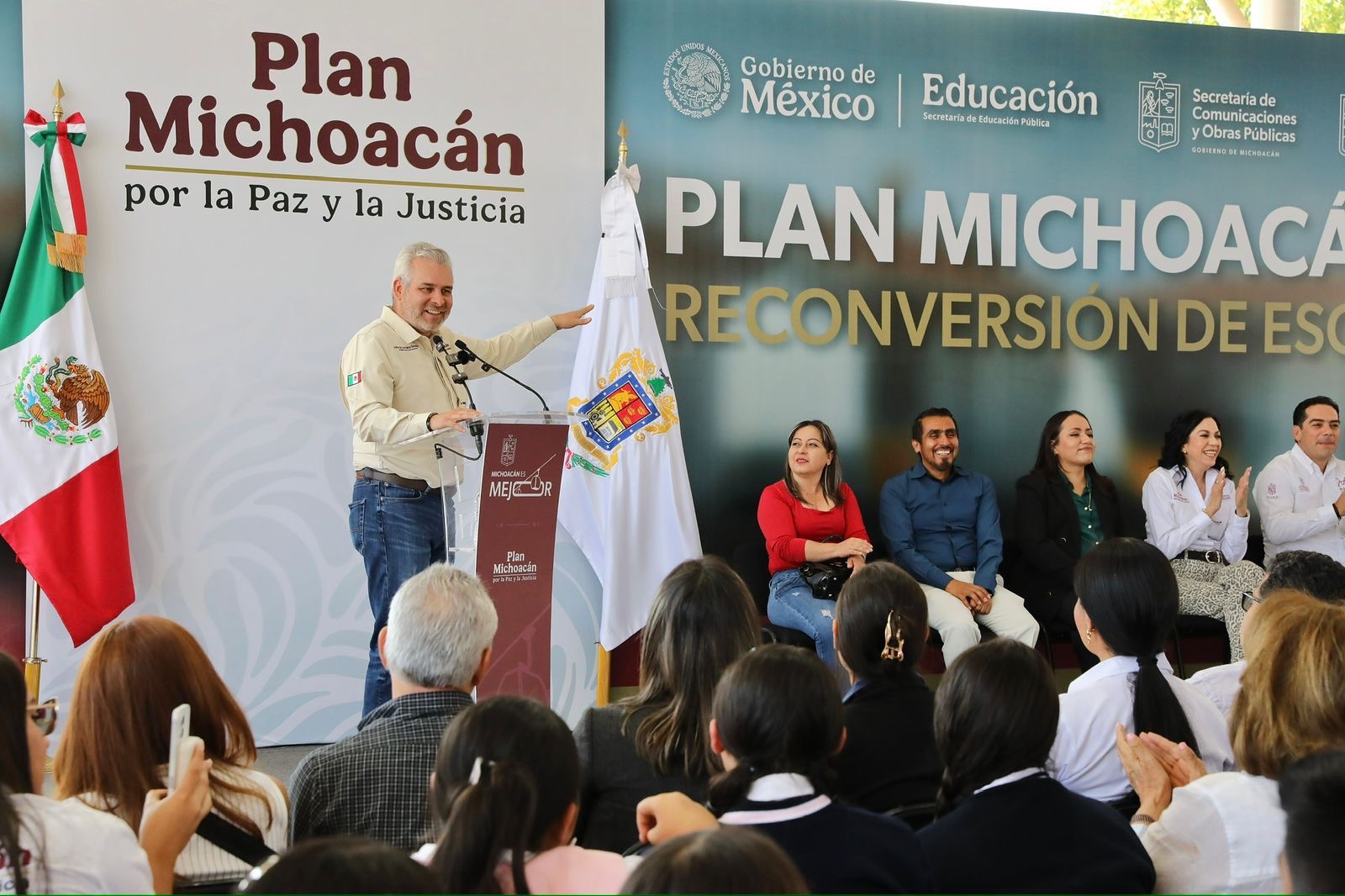 Uruapan, Michoacán, 27 de marzo de 2026.- El gobernador Alfredo Ramírez Bedolla y el secretario de Educación, Mario Delgado, inauguraron la reconversión de la telesecundaria “José María Morelos” a bachillerato en la comunidad de Tejerías, como parte del Plan Nacional de Bachillerato impulsado por la presidenta Claudia Sheinbaum Pardo.