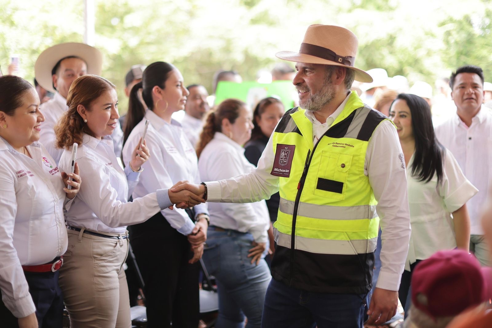 Acompañaron al gobernador en el arranque de obra el secretario Ejecutivo del Sistema Estatal de Seguridad Pública, César Erwin Sánchez Coria; el secretario de Comunicaciones y Obras Públicas, Rogelio Zarazúa Sánchez; la presidenta municipal de Apatzingán, Fanny Lyssette Arreola Pichardo; así como representantes de instituciones educativas y habitantes del municipio.