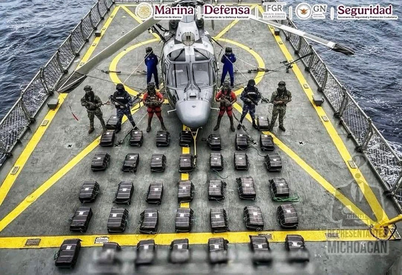 Morelia, Michoacán a 13 de junio de 2025.- La Secretaría de Marina, a través de la Armada de México y en coordinación con la Secretaría de la Defensa Nacional, la Guardia Nacional, la Fiscalía General de la República y la Secretaría de Seguridad y Protección Ciudadana, logró el aseguramiento de aproximadamente 1,120 kilogramos de presunta cocaína en aguas de #Guerrero.