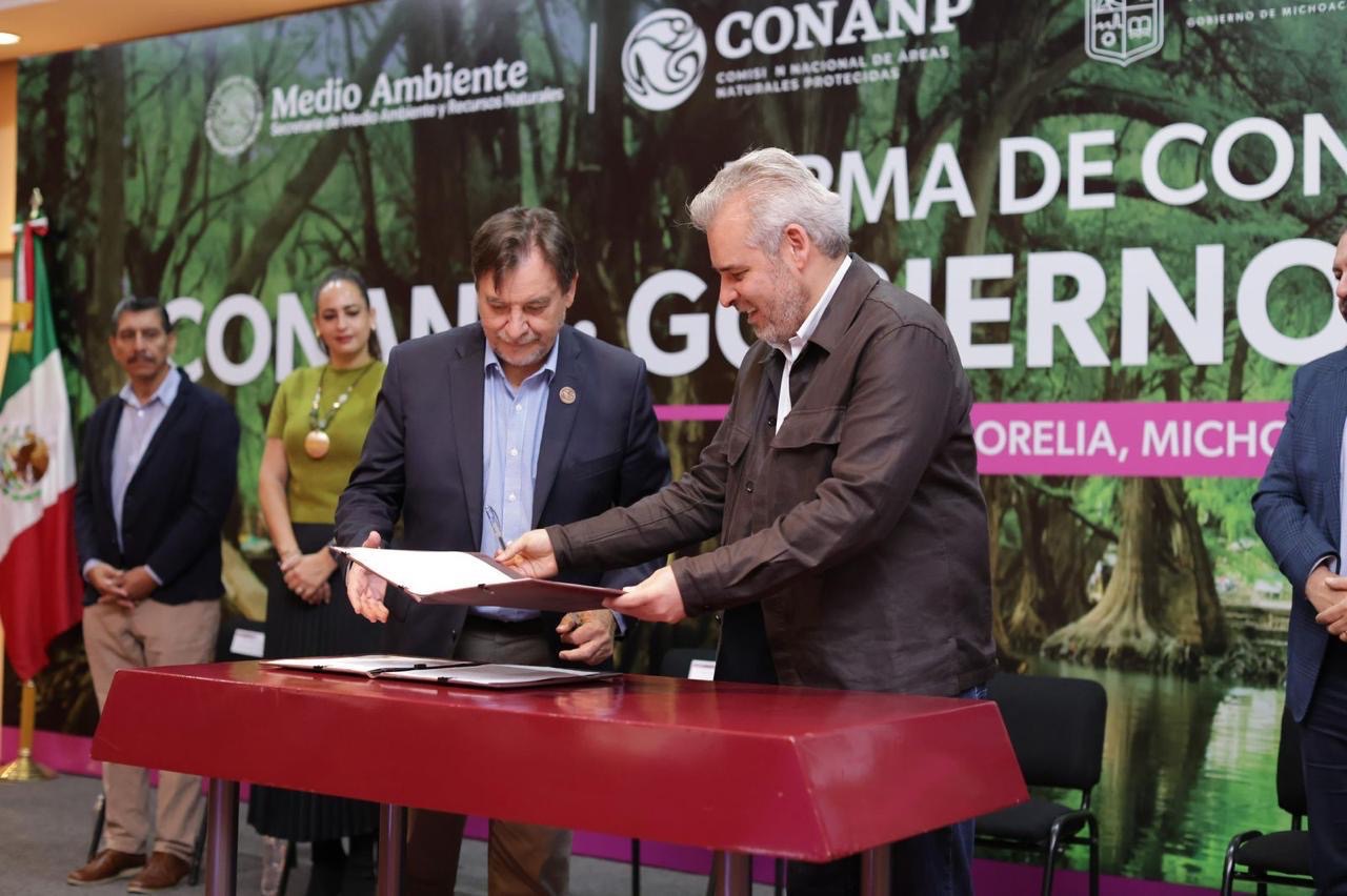 El mandatario explicó que el objetivo del convenio, respaldado por el gobierno federal que encabeza la presidenta Claudia Sheinbaum Pardo, es fortalecer el manejo, la protección y el desarrollo sustentable de las ANP en Michoacán.