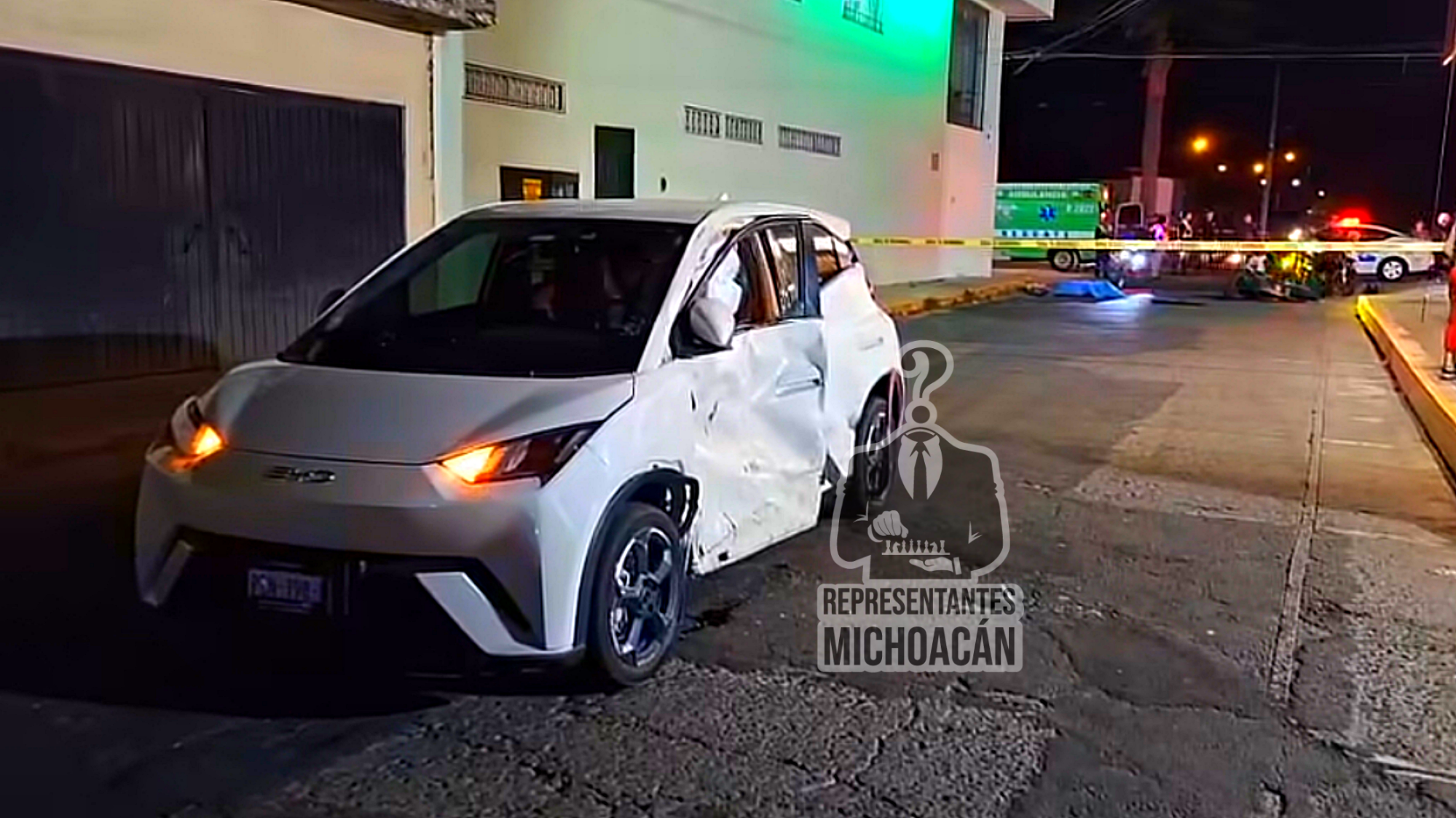 Uruapan, Michoacán, 1 de Marzo de 2026.– Un trágico accidente se registró la noche del sábado sobre la Calzada La Fuente, en la colonia Eduardo Ruiz, frente a las escuelas preparatorias, donde un joven motociclista perdió la vida y su acompañante resultó lesionada tras chocar contra un vehículo particular.