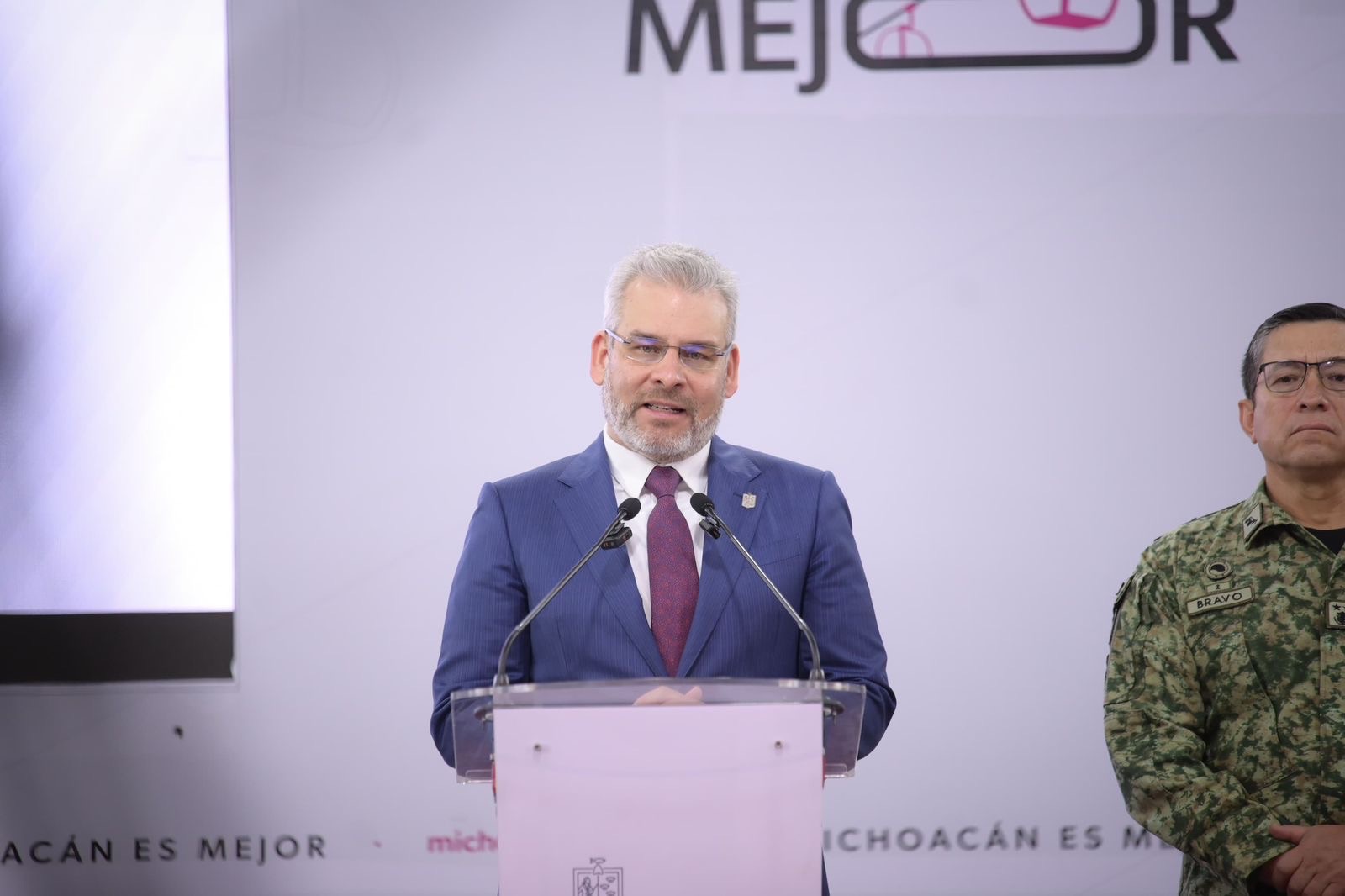 Acompañaron al gobernador el secretario de Gobierno, Raúl Zepeda Villaseñor; el fiscal general del Estado, Carlos Torres Piña; el comandante de la 21/a Zona Militar, Juan Bravo Velázquez; y el coordinador estatal de la Guardia Nacional en Michoacán, Roberto Eduardo Molina García.