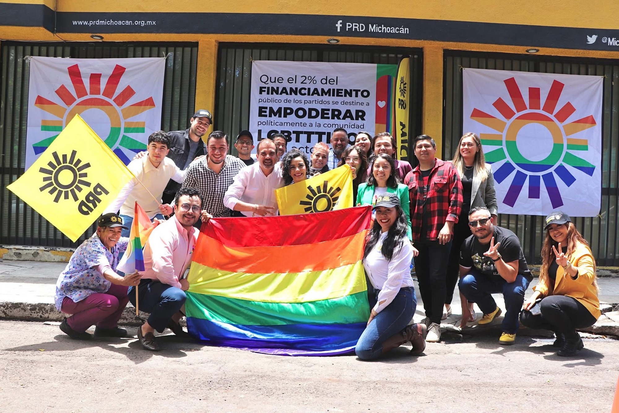 Morelia, Michoacán, 28 de junio de 2025.- En el marco del Día Internacional del Orgullo LGBTTTIQ+, el Comité Ejecutivo Estatal del Partido de la Revolución Democrática (PRD) en Michoacán realizó un acto conmemorativo para refrendar su compromiso con la inclusión y el respeto a la diversidad. Como parte de esta jornada simbólica, se colocaron banderas con los colores de la diversidad en la sede del partido.