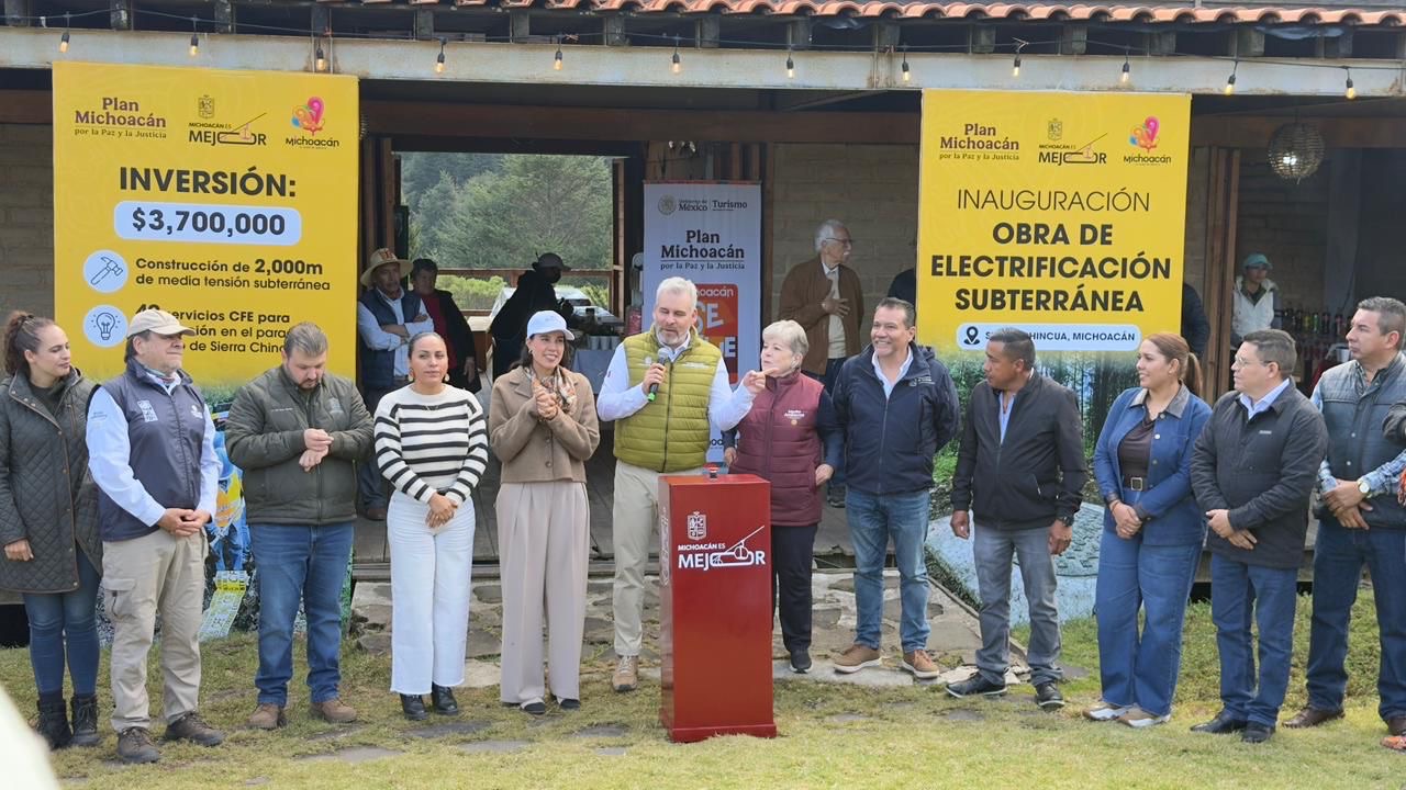 Angangueo, Michoacán, 24 de noviembre de 2025.- La obra de electricidad subterránea en Sierra Chincua fue concluida e inaugurada este fin de semana durante la apertura oficial de los Santuarios de la Mariposa Monarca en Michoacán, informó la Secretaría de Turismo del estado (Sectur).
