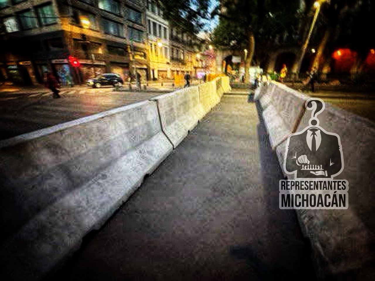 Morelia, Michoacán a 14 de noviembre de 2025.- Durante la madrugada, de seguridad colocaron estructuras de concreto alrededor de Palacio Nacional como parte de un operativo preventivo ante la movilización anunciada para este 15 de noviembre.