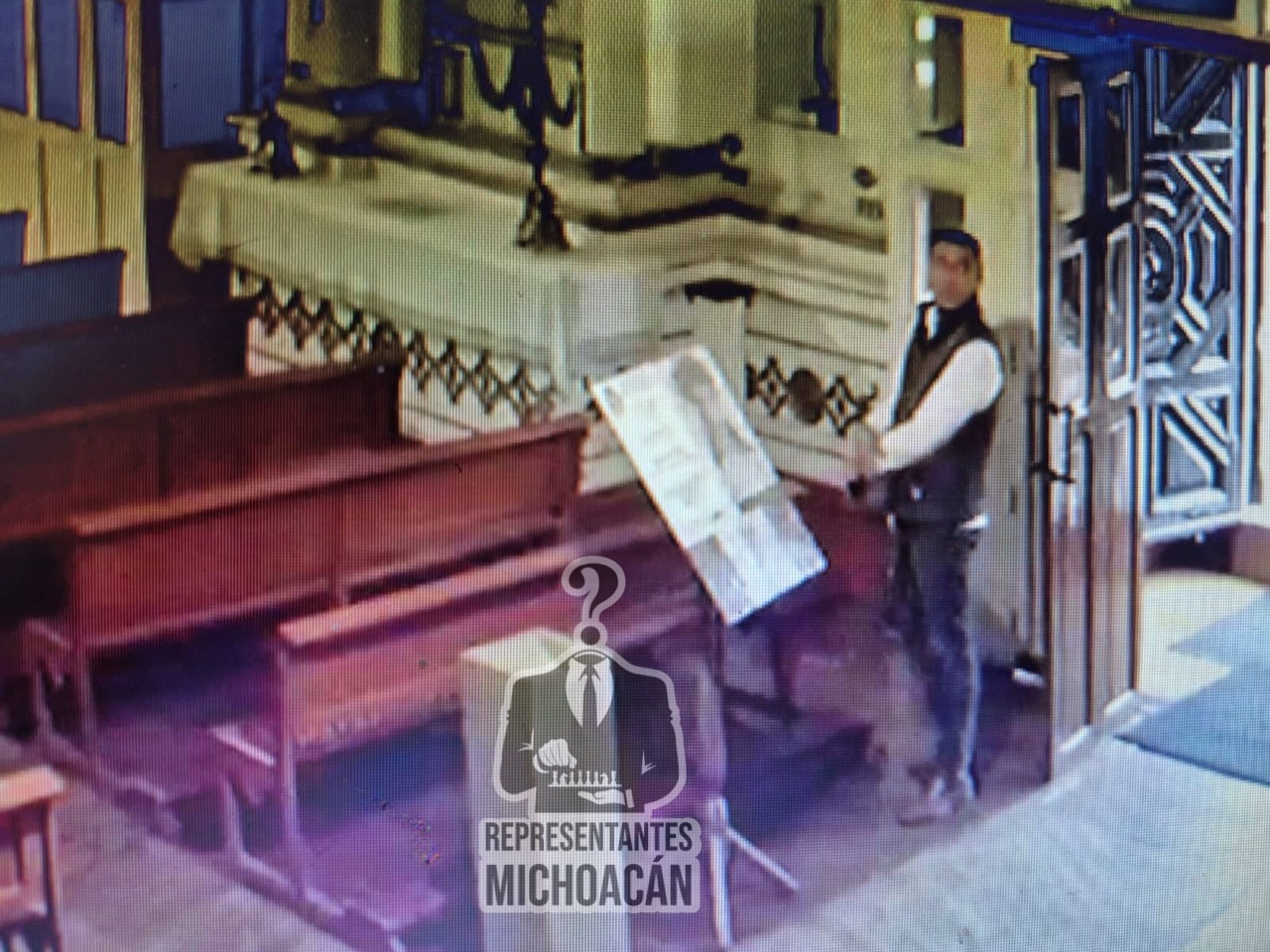 El momento del robo quedó captado en video por las cámaras de seguridad del recinto. En las imágenes se observa a un hombre retirando cuidadosamente la figura del altar y saliendo con ella del templo.