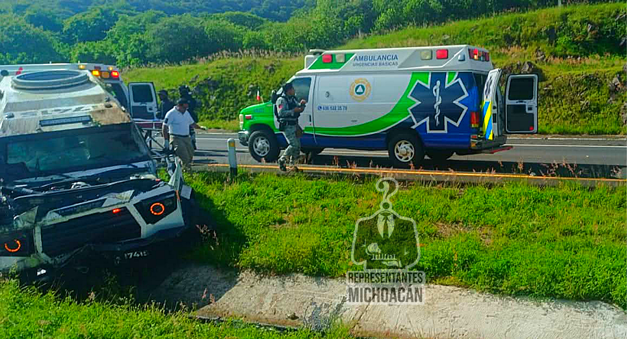 Panindícuaro, Michoacán, 11 de Septiembre de 2025.- La mañana de este jueves se registró un aparatoso accidente en la autopista México–Guadalajara, a la altura del municipio de Panindícuaro, donde un vehículo blindado de la Guardia Nacional salió del camino y terminó impactado contra la cuneta central.