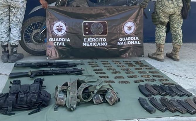 Los hechos ocurrieron en las inmediaciones de la localidad de Gámbara, donde los agentes interceptaron a dos sujetos de 20 y 44 años de edad que se desplazaban en una motocicleta marca Italika. Durante la revisión, se les encontraron en posesión de dos fusiles, 360 cartuchos útiles, 13 cargadores y dos chalecos tácticos.