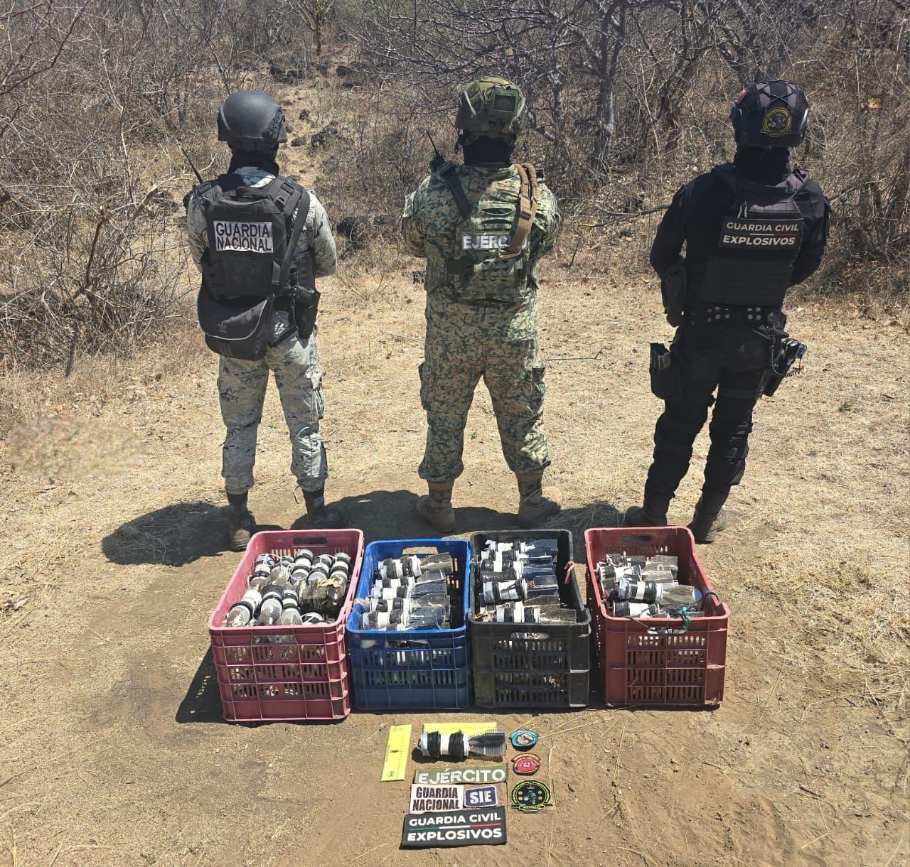 Durante patrullajes preventivos en caminos de terracería, personal de la Guardia Civil, el Ejército Mexicano y la Guardia Nacional localizaron los explosivos y procedieron a establecer perímetros de seguridad para su inhabilitación inmediata.