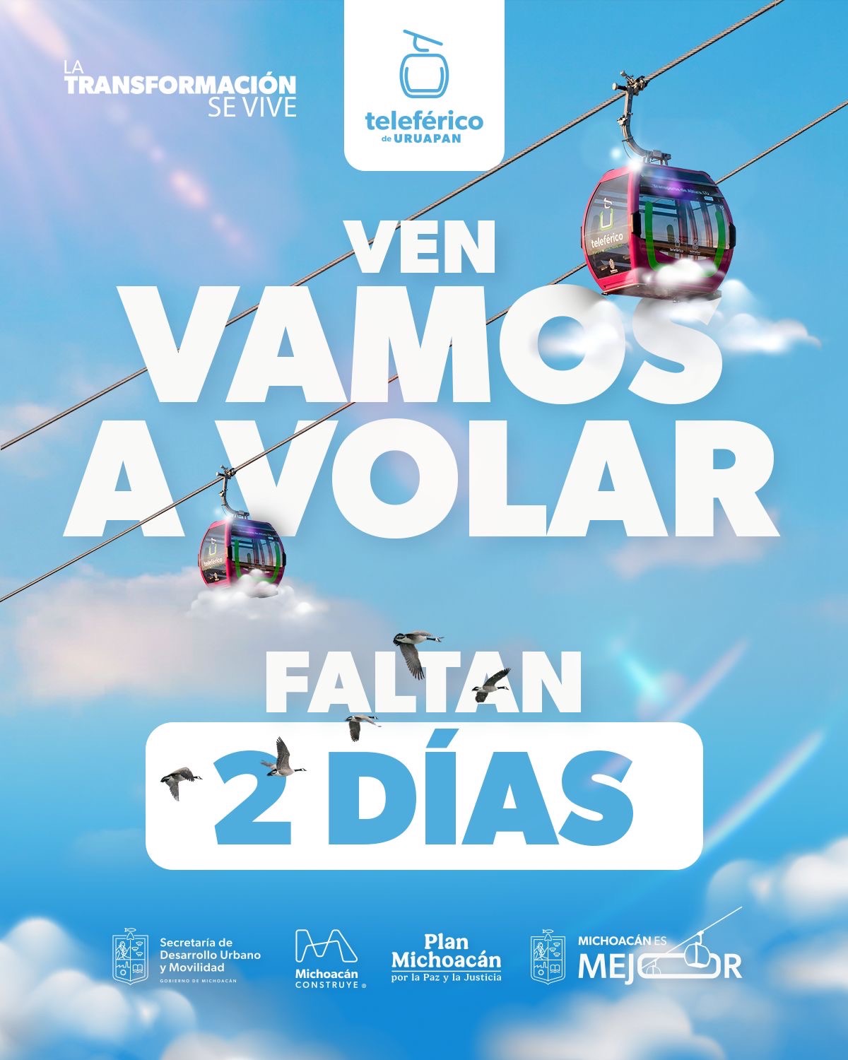 Morelia, Michoacán, 16 de abril de 2026.- El teleférico de Uruapan se encuentra a dos días de iniciar operaciones, como parte de un proyecto de movilidad que busca mejorar el traslado de las y los habitantes y visitantes de la ciudad.