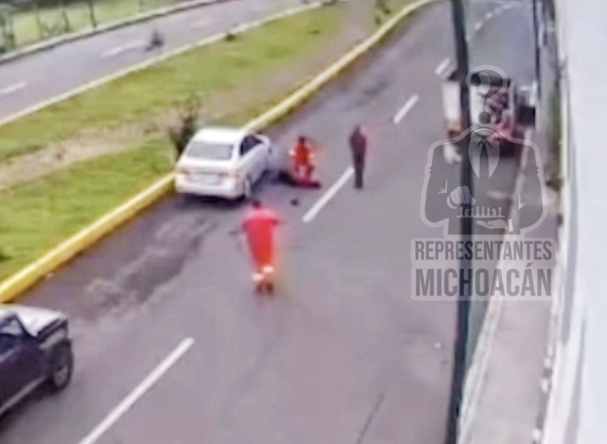 Morelia, Michoacán a 17 de junio de 2025.- Un trabajador del área de limpieza municipal fue embestido por un vehículo mientras realizaba sus labores sobre la avenida Amalia Solórzano, al sur de la capital michoacana.
